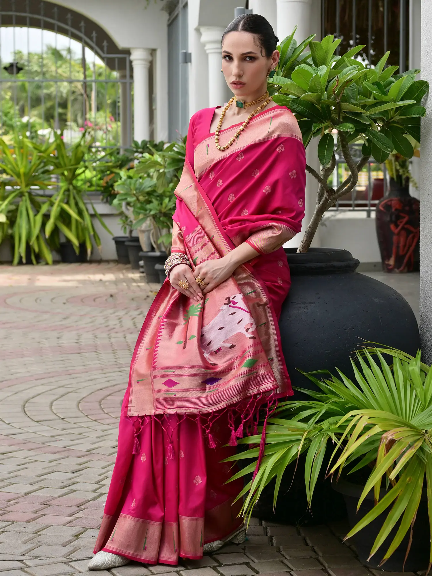 Silk Saree with Zari-Woven Border and Geometric Motifs All-Over