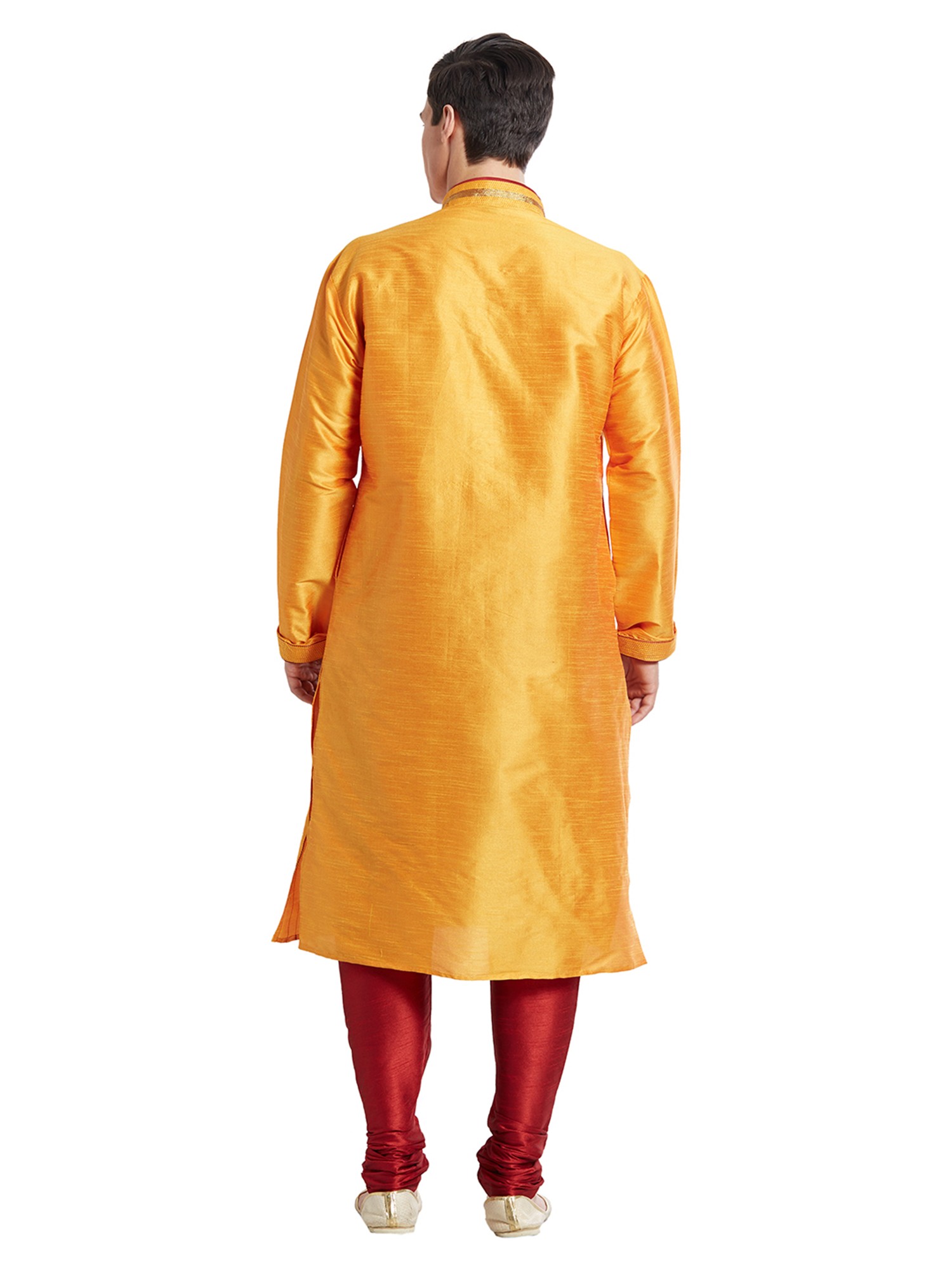 Wedding Kurta Pajama Set with Embroidered Collar and Jacquard Woven Paan Leaves