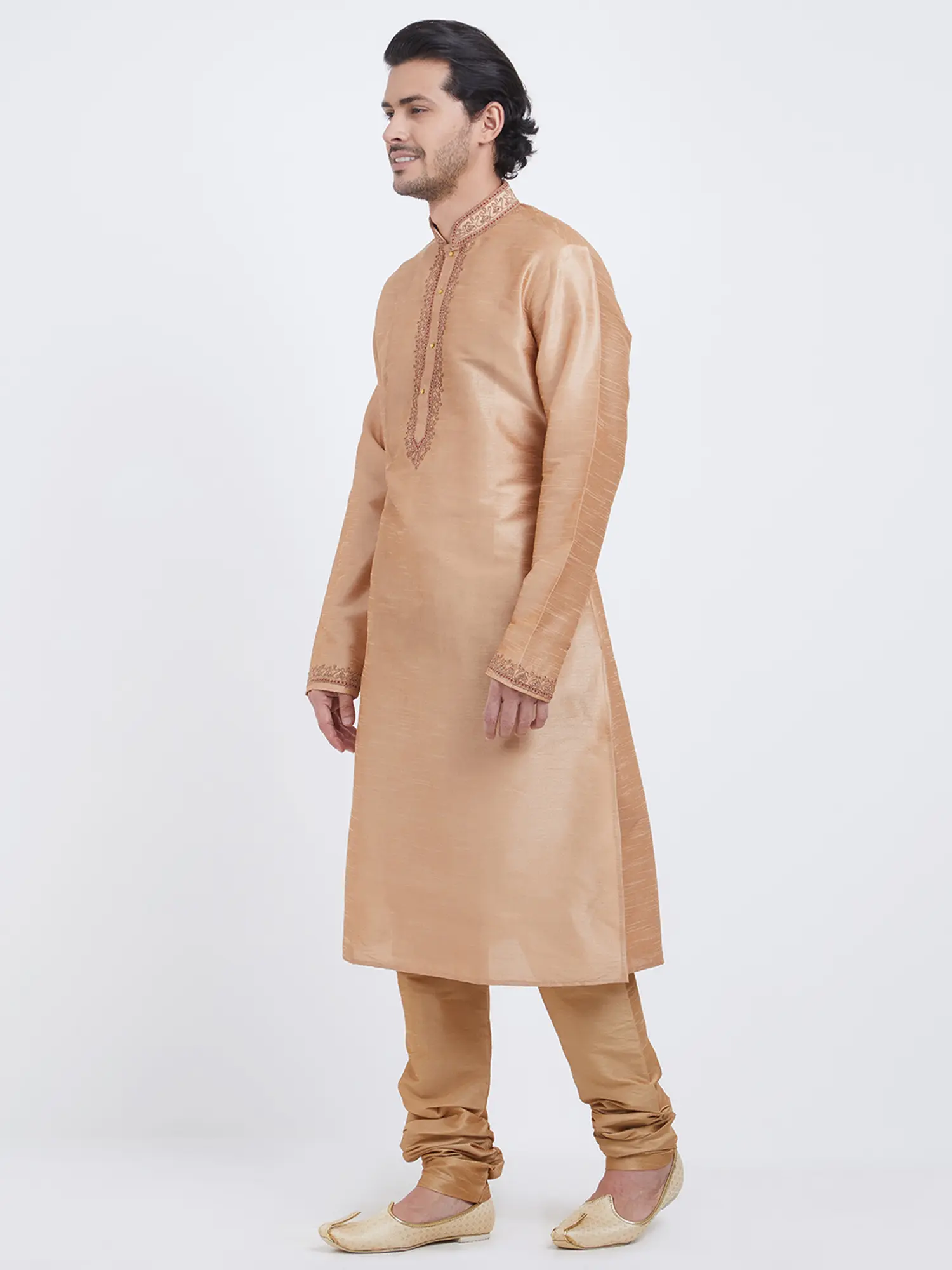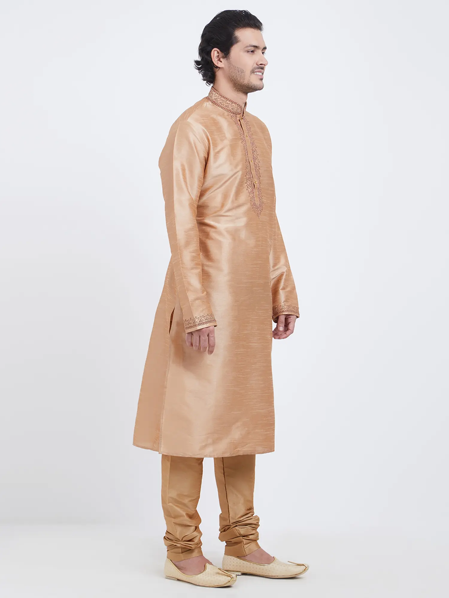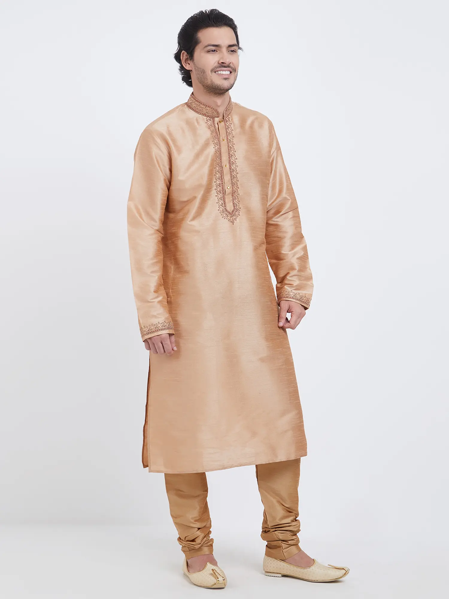 Men's Traditional Kurta Pajama Set in Art Silk with Detailed Embroidery