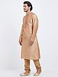 The elegant kurta, rendered in a warm, inviting hue, features a flattering silhouette that celebrates both tradition and ease. Paired with the perfectly tailored churidar pajama, it creates a harmonious look that is both striking and comfortable. The subtle sheen of the Art Silk fabric catches the light, enhancing the visual appeal of the delicate embellishments.