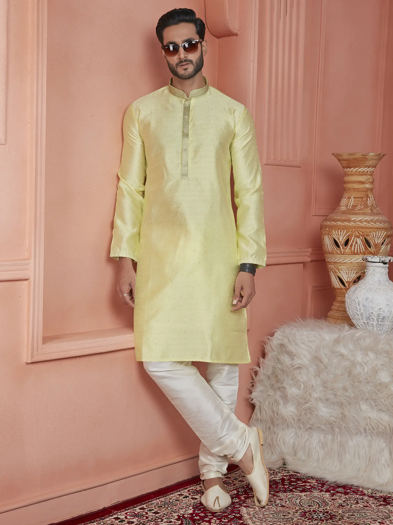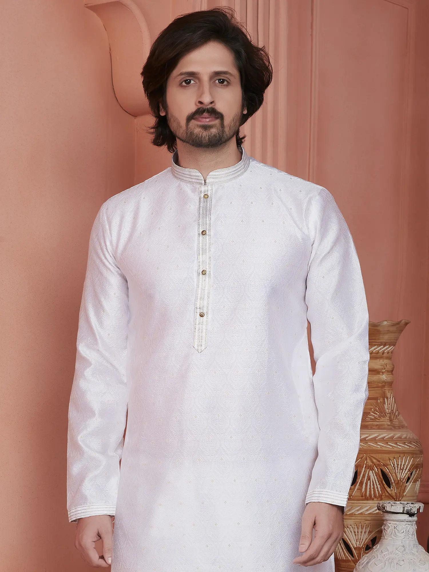 Silk Blend Curved Shape Pathani Style Men's Kurta