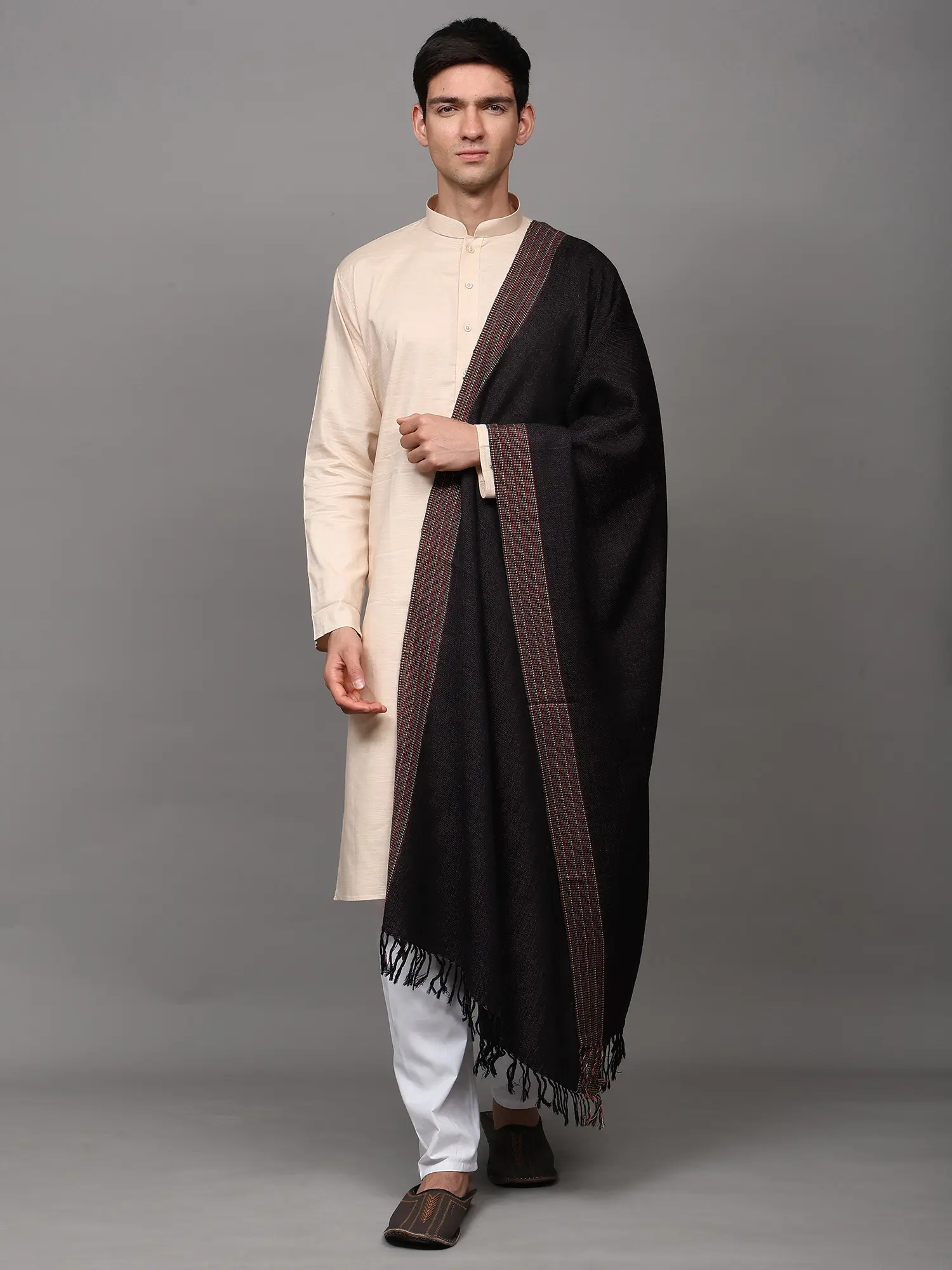 Handspun Men's Dushala Shawl (Lohi) from Kullu with Embroidered Border