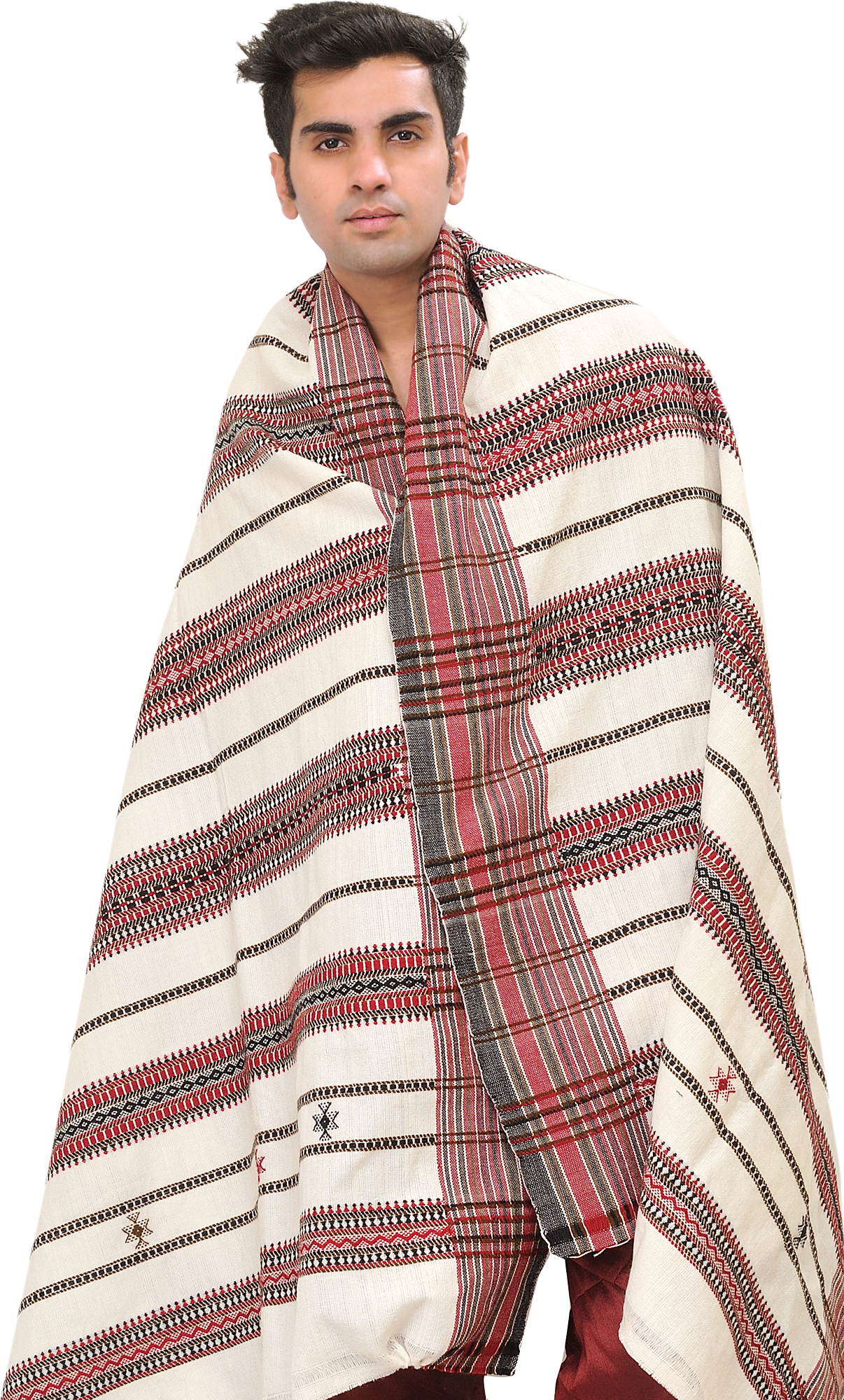Men's Shawl from Kutch with Woven Border and Embroidered Mirrors