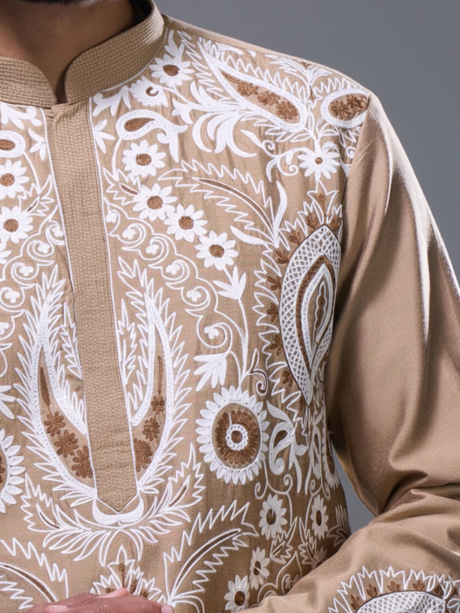 Feel the luxurious embrace of pure silk, chosen for its subtle sheen and exquisite drape. Each piece is meticulously crafted, showcasing intricate embroidery that flows like art across the fabric. The skilled artisans pour their dedication into every stitch, ensuring a creation that speaks of unparalleled quality and attention to detail.