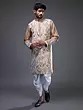 Traditional Silk Kurta Pajama Set with Intricate Embroidery and Mirror Details for Men