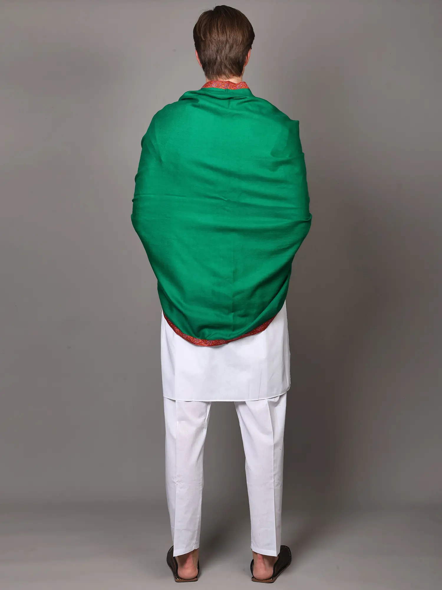 Plain Kashmiri Kingri Shawl with Sozni Hand-Embroidery on Border