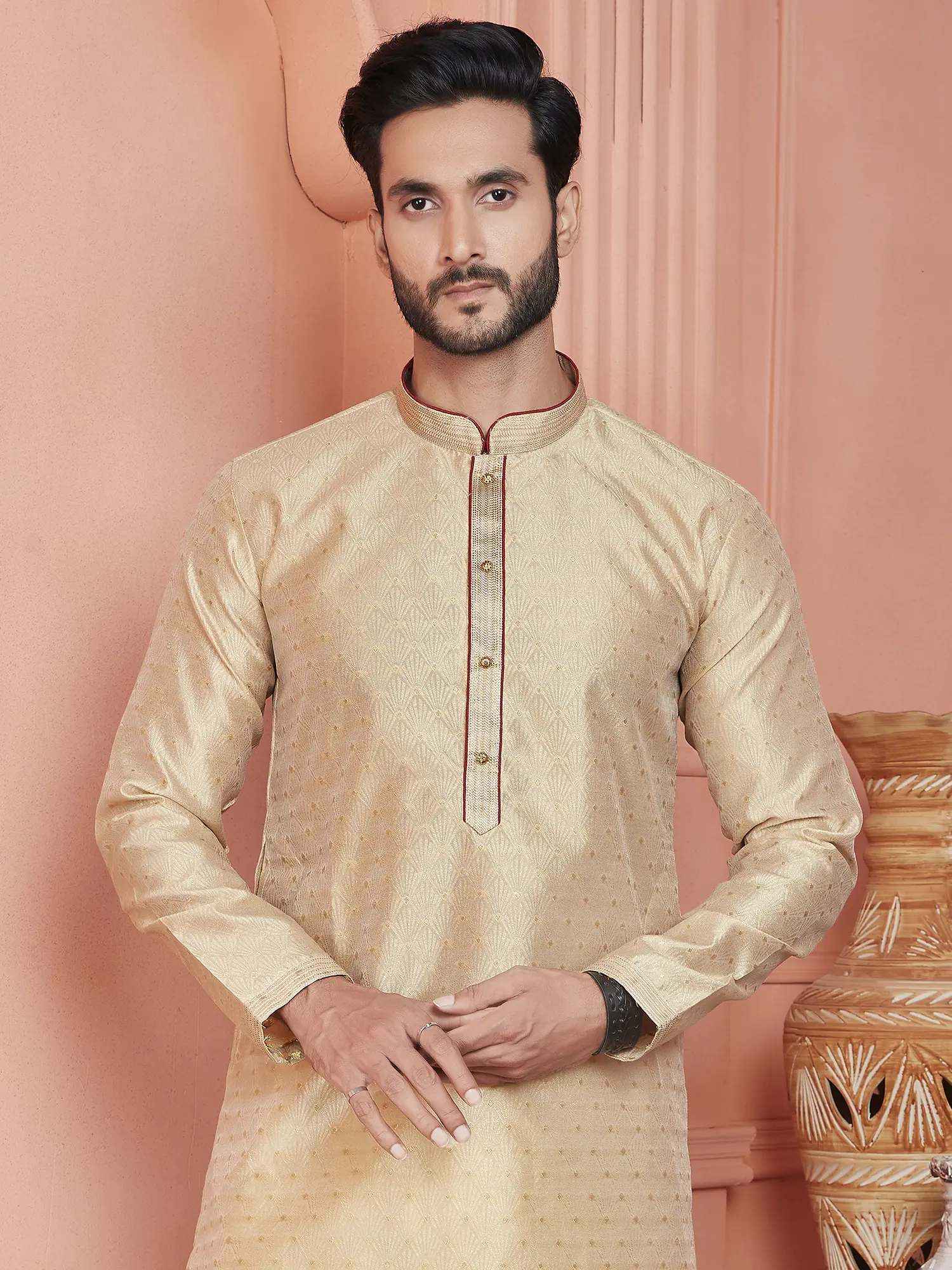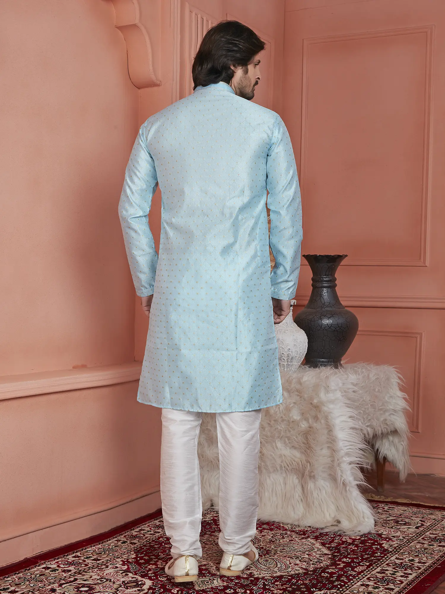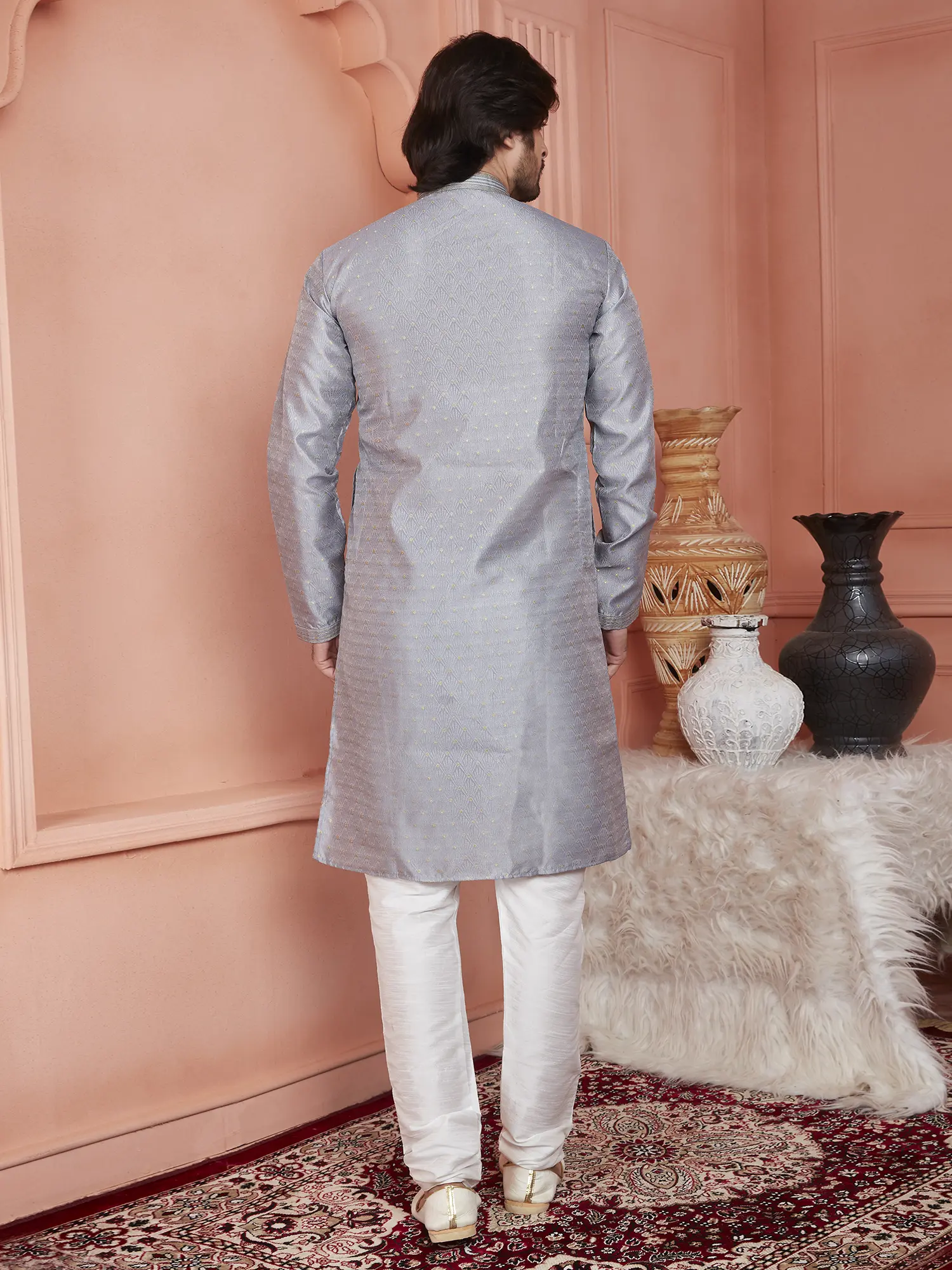 Straight Attractive Jacquard Silk Brocade Kurta With Churidar Pajama