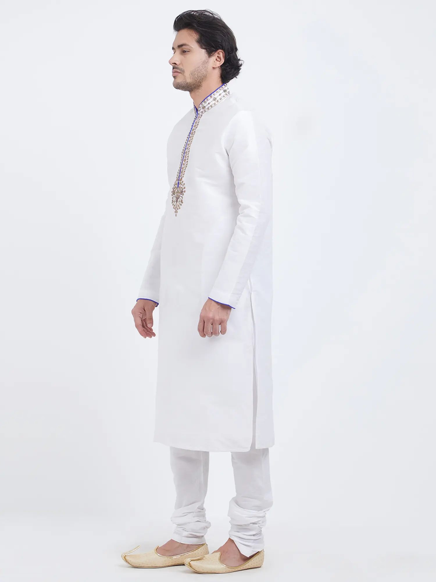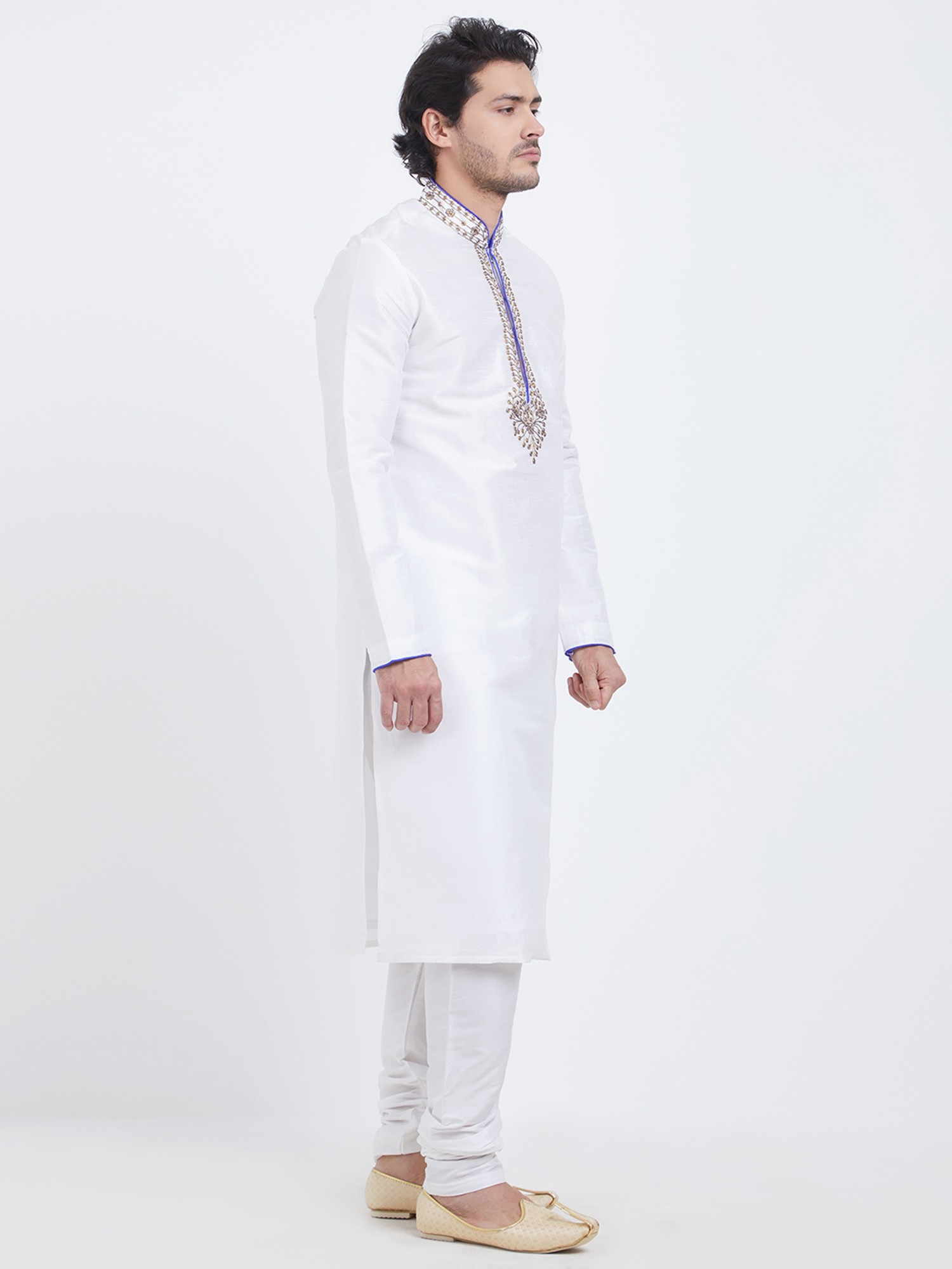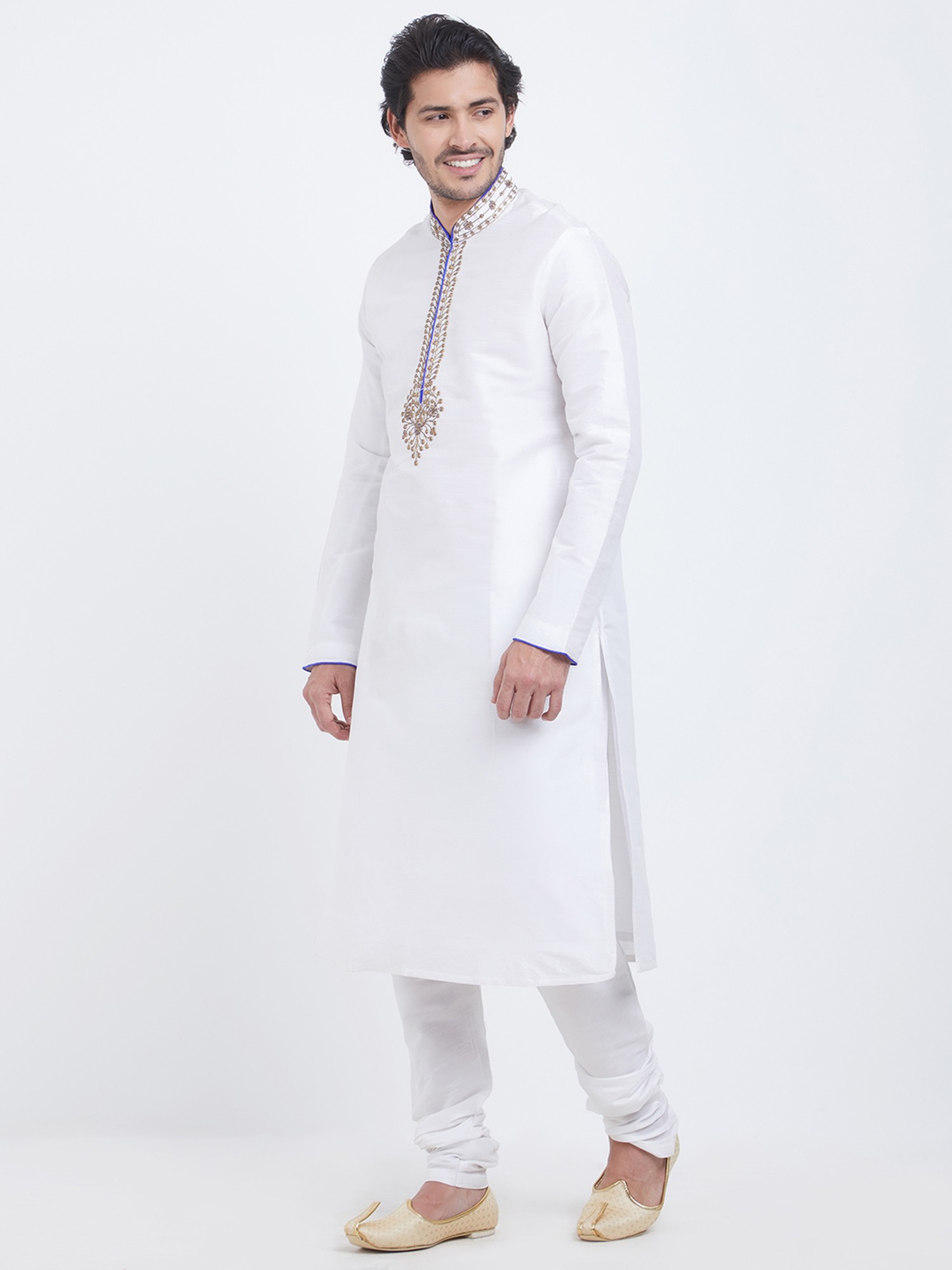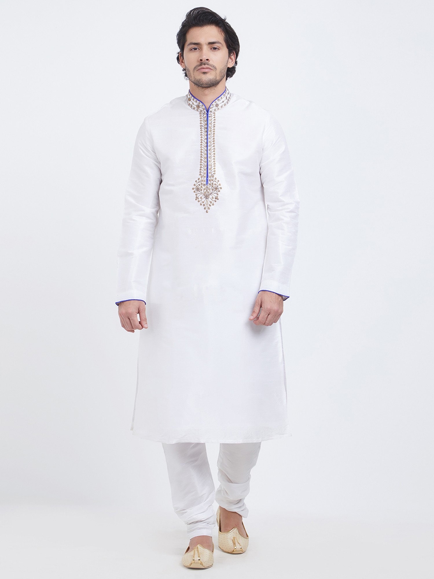 Men's Traditional Kurta Pajama Set in Art Silk with Detailed Embroidery