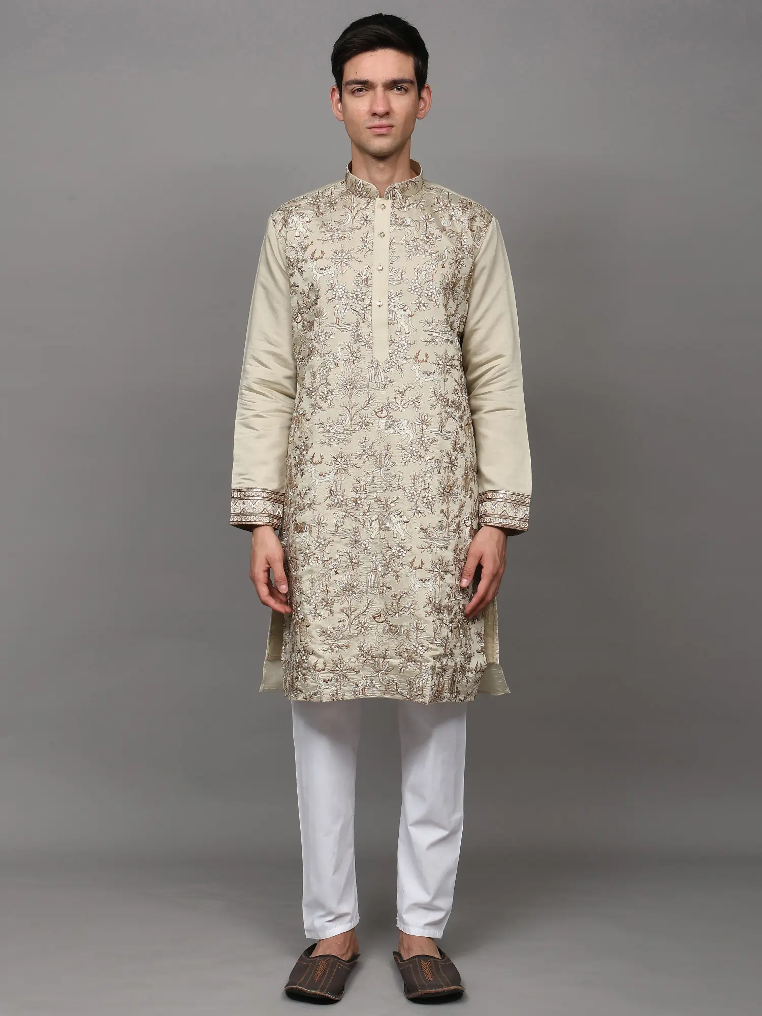 Designer Multi-Colored Kurta Pajama Set with Mirrors and Embroidered Sequins