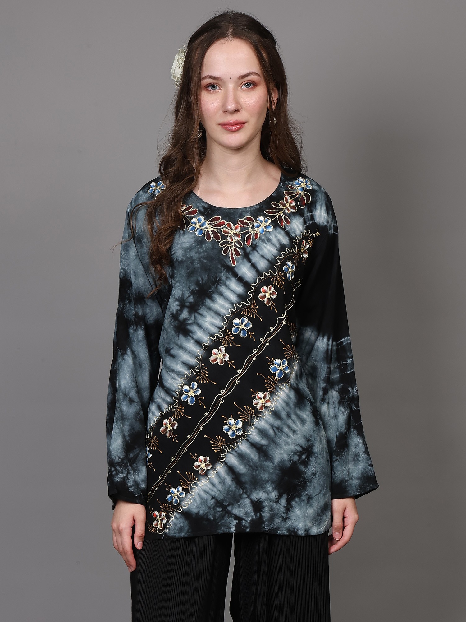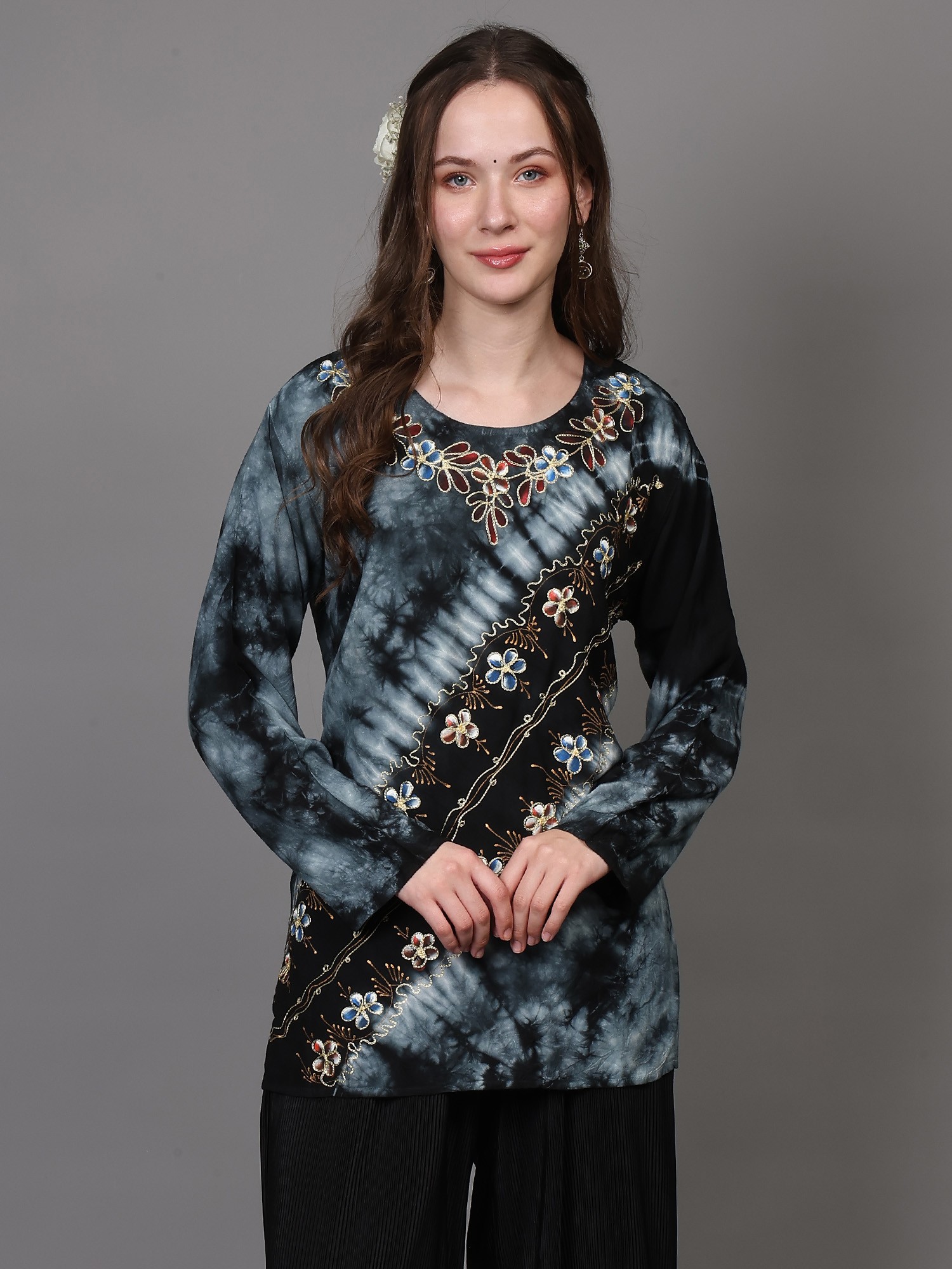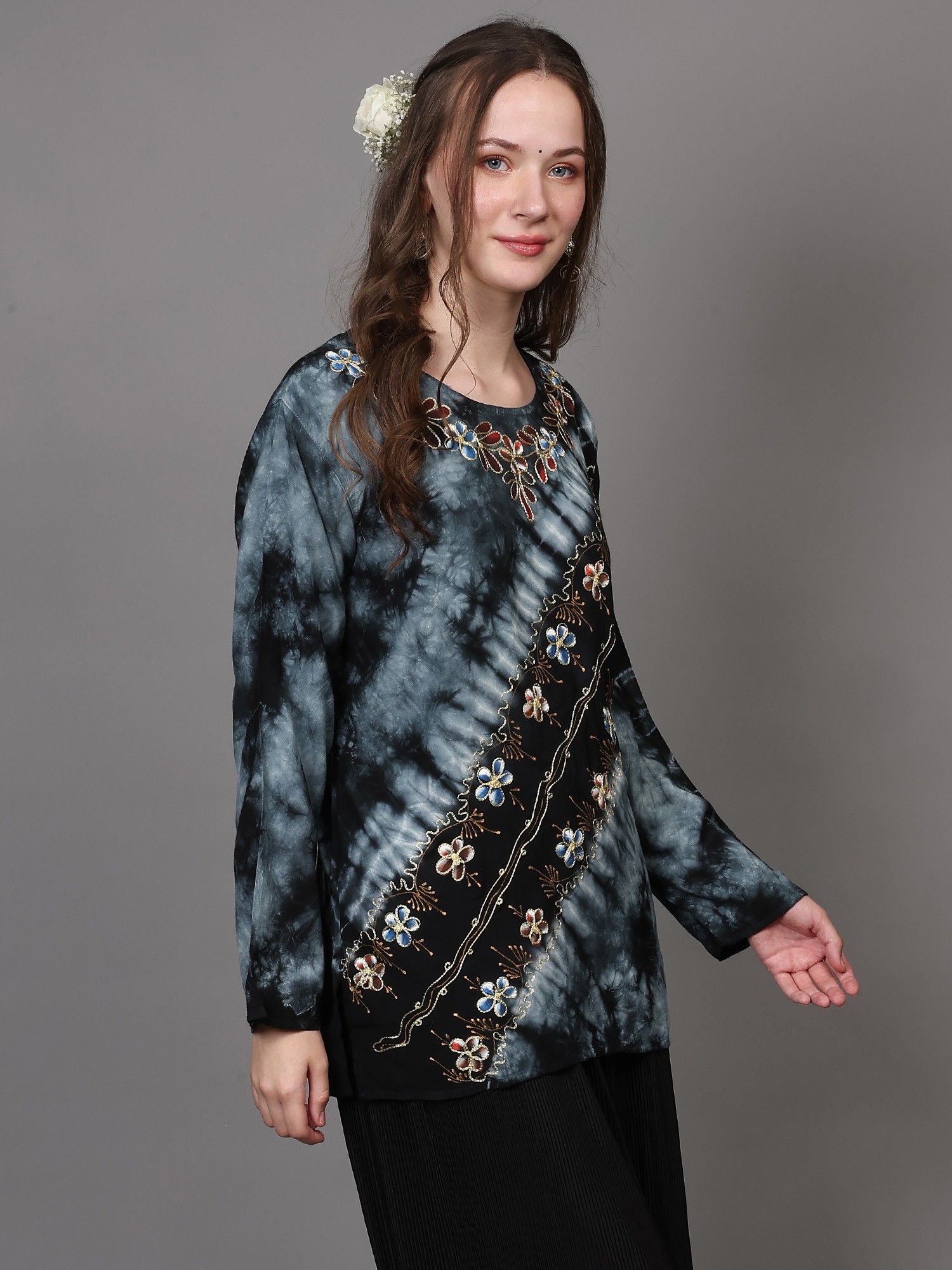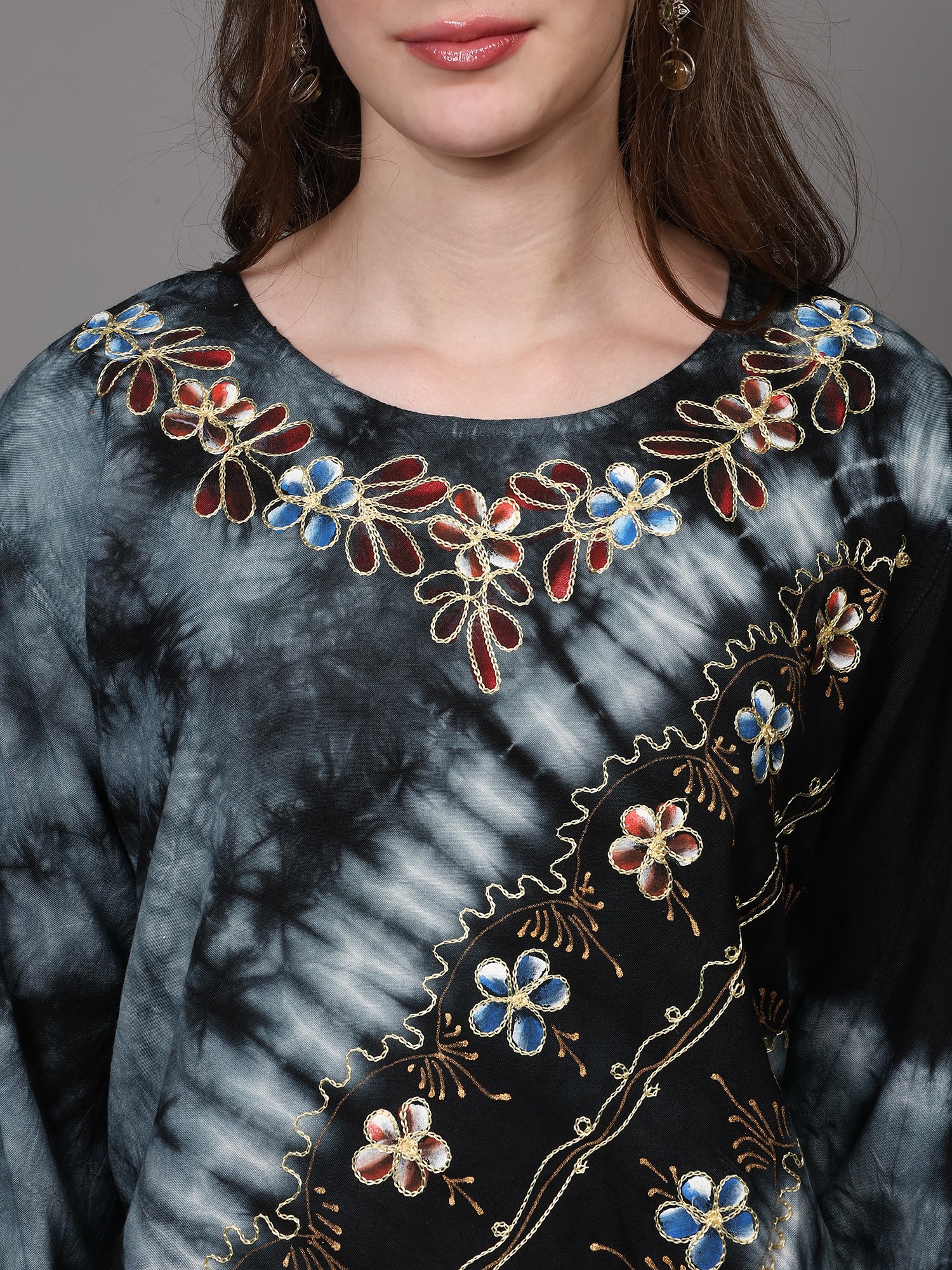 Moroccan-Blue Phiran with Aari Embroidered Paisley Vine from Kashmir
