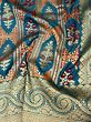 Beautified by gracious floral and flowering creepers created with fine Zari threads, this Banarasi Patan Patola silk sari sticks to the ethnic motifs for its charm, and the result is amazing.