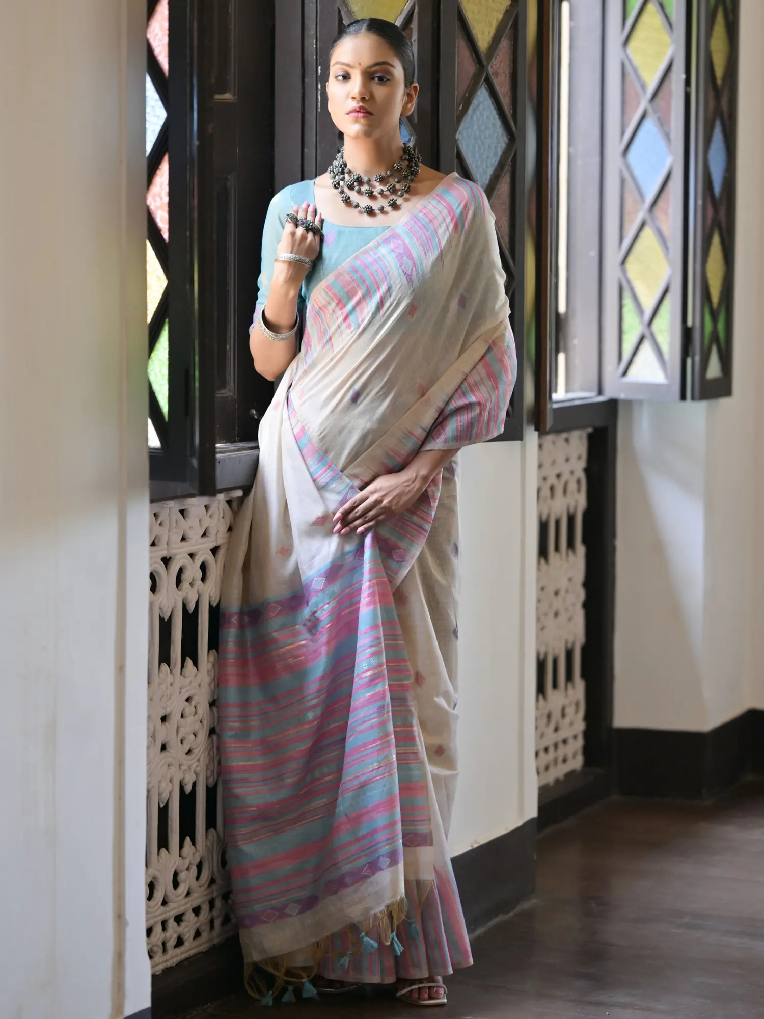 Muga Cotton Ikkat Woven Pallu And Broad Border Saree For Casual Occasion