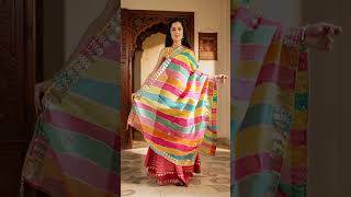 The Multi-Color Leheria Kota Doria Dupatta from Jodhpur showcases the iconic Leheria tie-dye technique and the rich heritage of Kota Doria. With a Gota border, it seamlessly marries traditional and contemporary elements. The vibrant colors and lightweight fabric align perfectly with today's fashion trends, making it a valuable addition to your wardrobe. A reflection of the rich tapestry of Indian textiles, this dupatta is a treasure to behold.