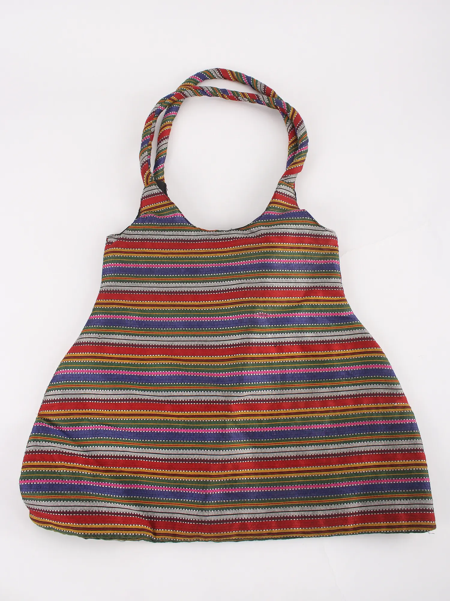 Elevate your everyday style with this exquisite multi-color shopper bag, a vibrant celebration of traditional artistry. Crafted from lustrous art silk, this bag boasts a rich and diverse color palette, woven into a captivating striped pattern that is both eye-catching and sophisticated. Each stripe tells a story, blending bold hues with subtle undertones to create a harmonious visual symphony.