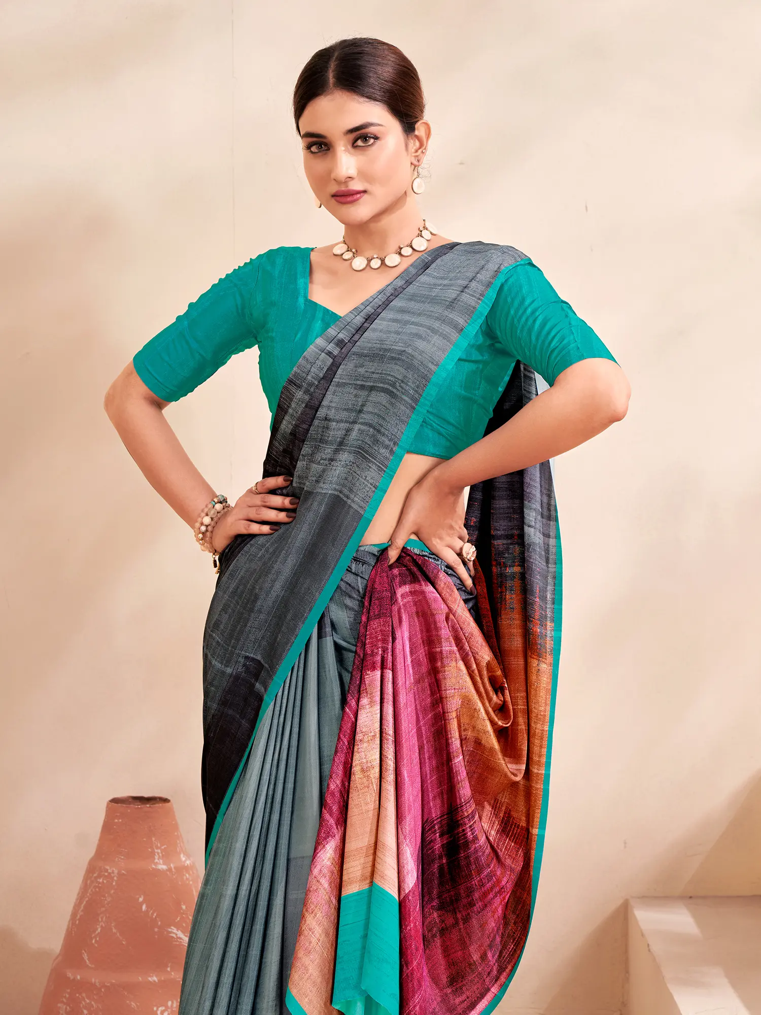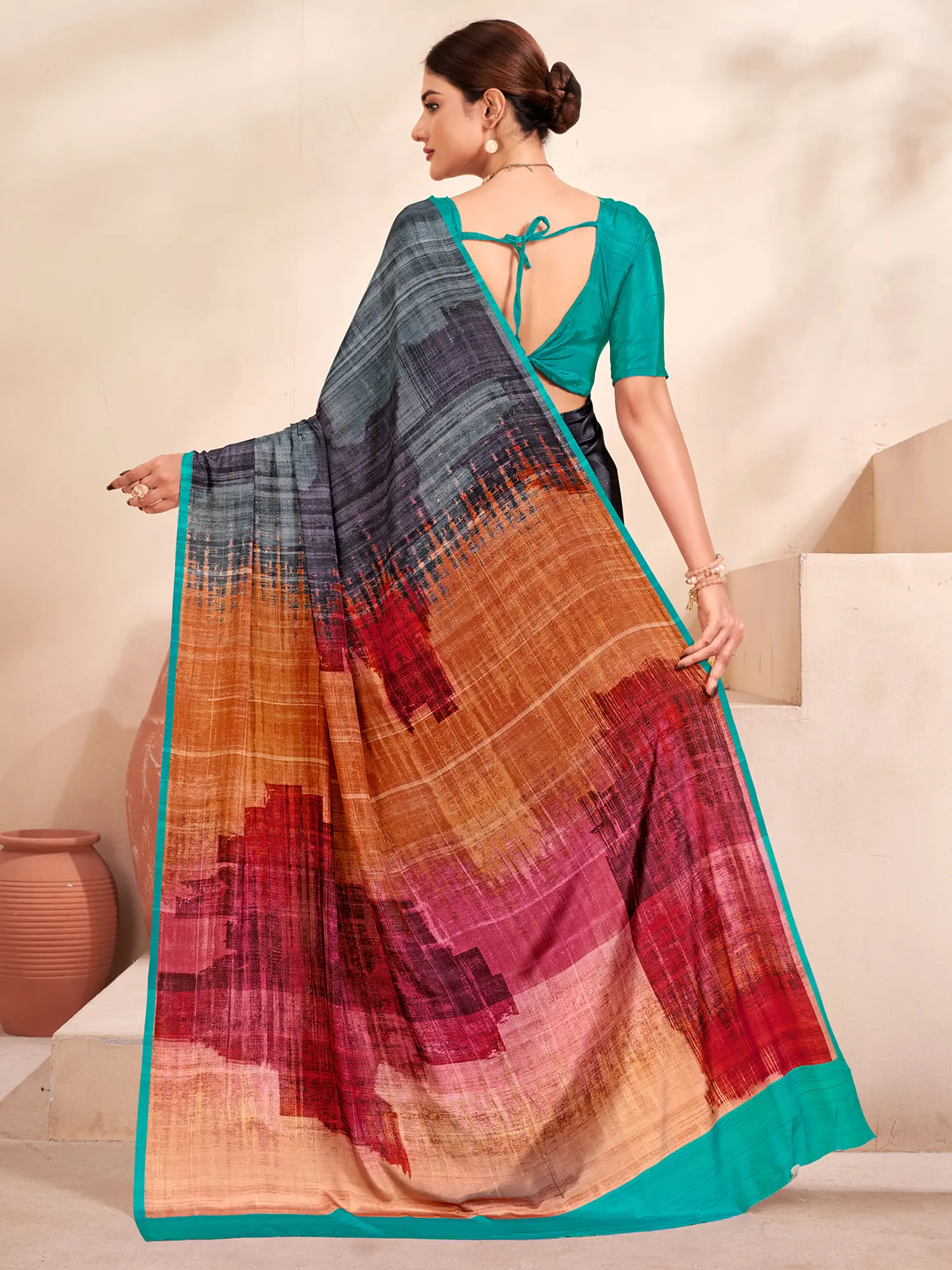 Multicolor Georgette Saree with Lotus Print and Patch Border