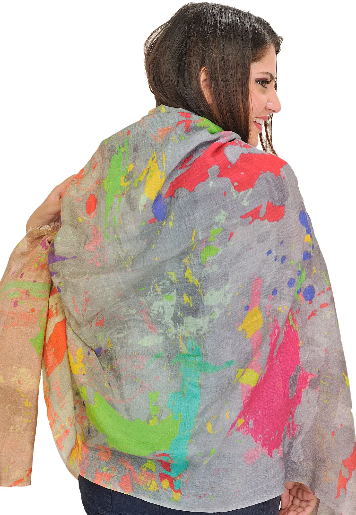 Ruby and Beige Digital-Printed Stole with Missing Checks in Weave
