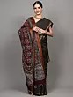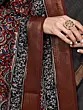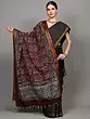 Black-Ink Floral Printed Kalamkari Dupatta from Telangana with Zari Woven Border and Dancing Apsaras