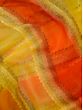 Who said that a Banarasi Saree has to be a heavily brocaded piece? For the days when you need a light touch of traditional Indian style in your attire, this multicolor georgette saree from Banaras is hand-dyed so that you do not have to compromise on a regal feel while you enjoy the lightness and beautiful drape of georgette.