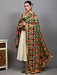 Multicolor Embroidered Phulkari Dupatta from Punjab with Mirrors and Beaded Zari Border