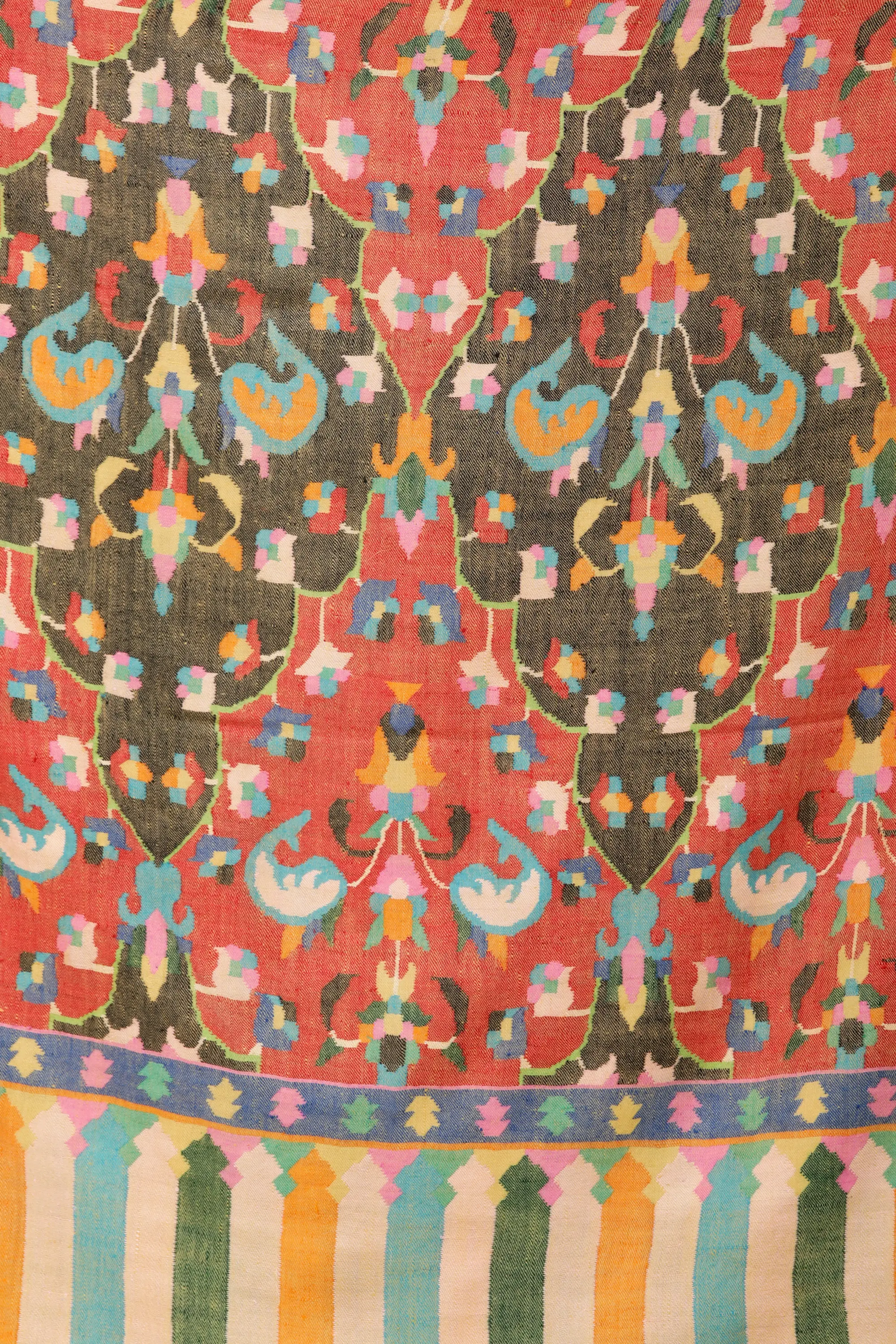 Kani Shawl from Amritsar with Woven Procession of King and Birds on Tree Branch