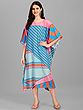 Satin Floor Length Stone work Kaftan with Printed Multicolor Motifs