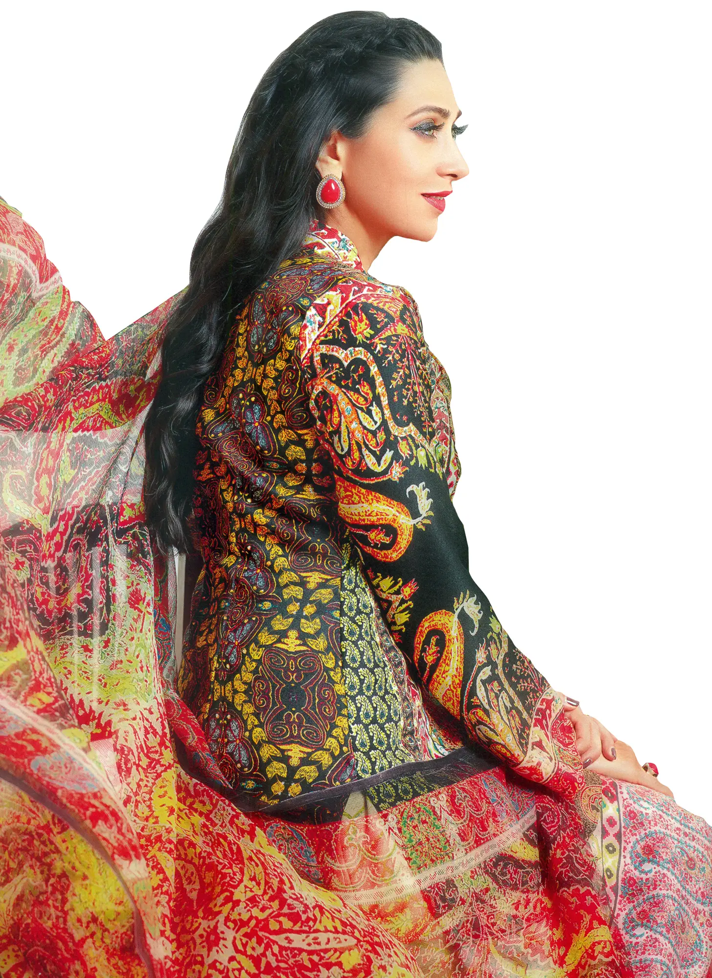 Immerse yourself in a world of vibrant artistry with this exquisite salwar suit ensemble. Designed to captivate, this outfit is a celebration of traditional Indian aesthetics blended with contemporary flair, making it a perfect addition to your wardrobe for any festive occasion or a stylish everyday statement. The rich tapestry of colors woven throughout the design evokes a sense of joyful exuberance, ensuring you stand out with understated elegance.