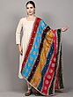 Multicolor Printed Art Silk Dupatta from Amritsar with Bead-Mirror work and Lace Border