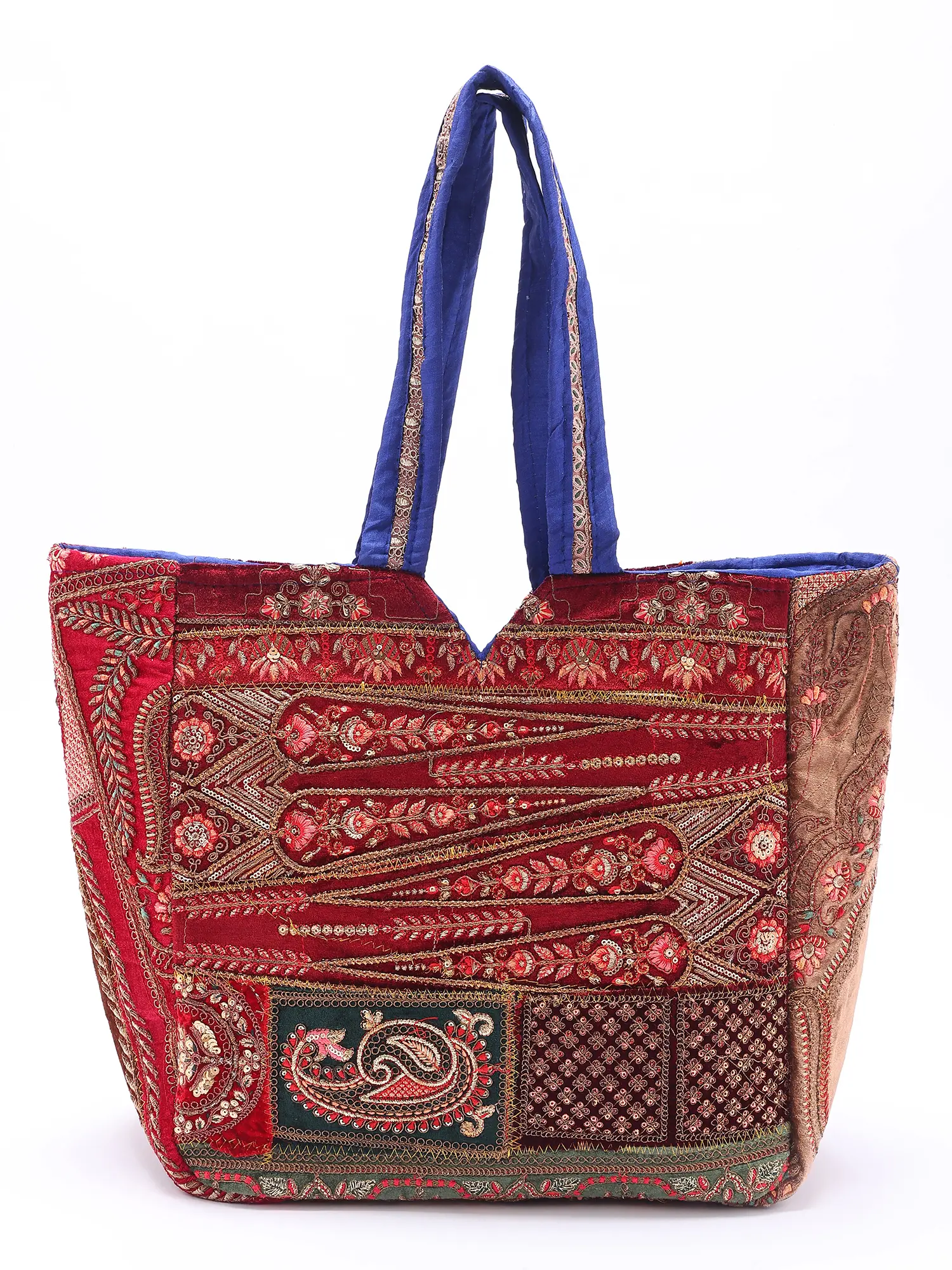 Patchwork Shoulder Bag with Bead-Sequins Embroidered Floral Paisleys from Kutch