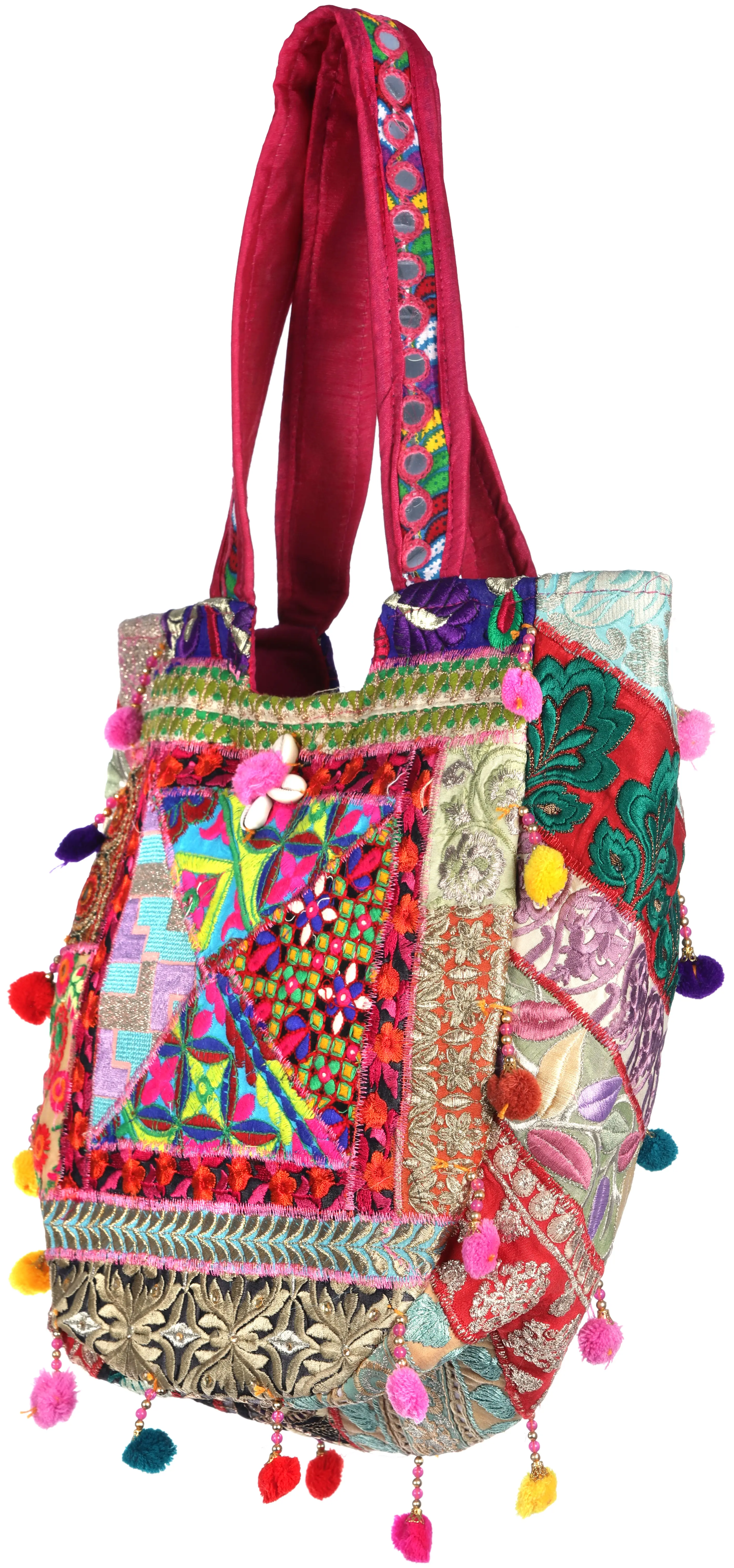 Embrace a world of vibrant color and exquisite craftsmanship with this stunning shopper bag, a testament to the rich artistic heritage of Kutch. Each bag is a unique masterpiece, meticulously handcrafted by skilled artisans, showcasing a breathtaking mosaic of fabrics, intricate embroidery, and playful embellishments. This is more than just a bag; it's a wearable piece of art that tells a story of tradition, skill, and a celebration of life's vivid hues.