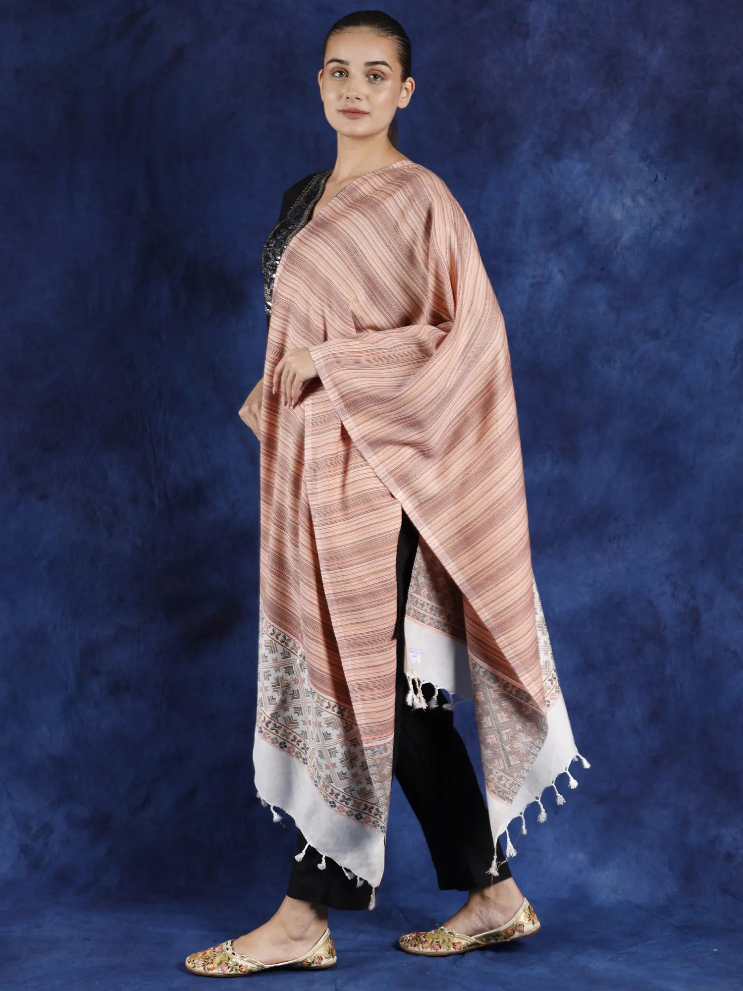 Rust and White Broad Stripe Printed Pashmina Stole from Nepal