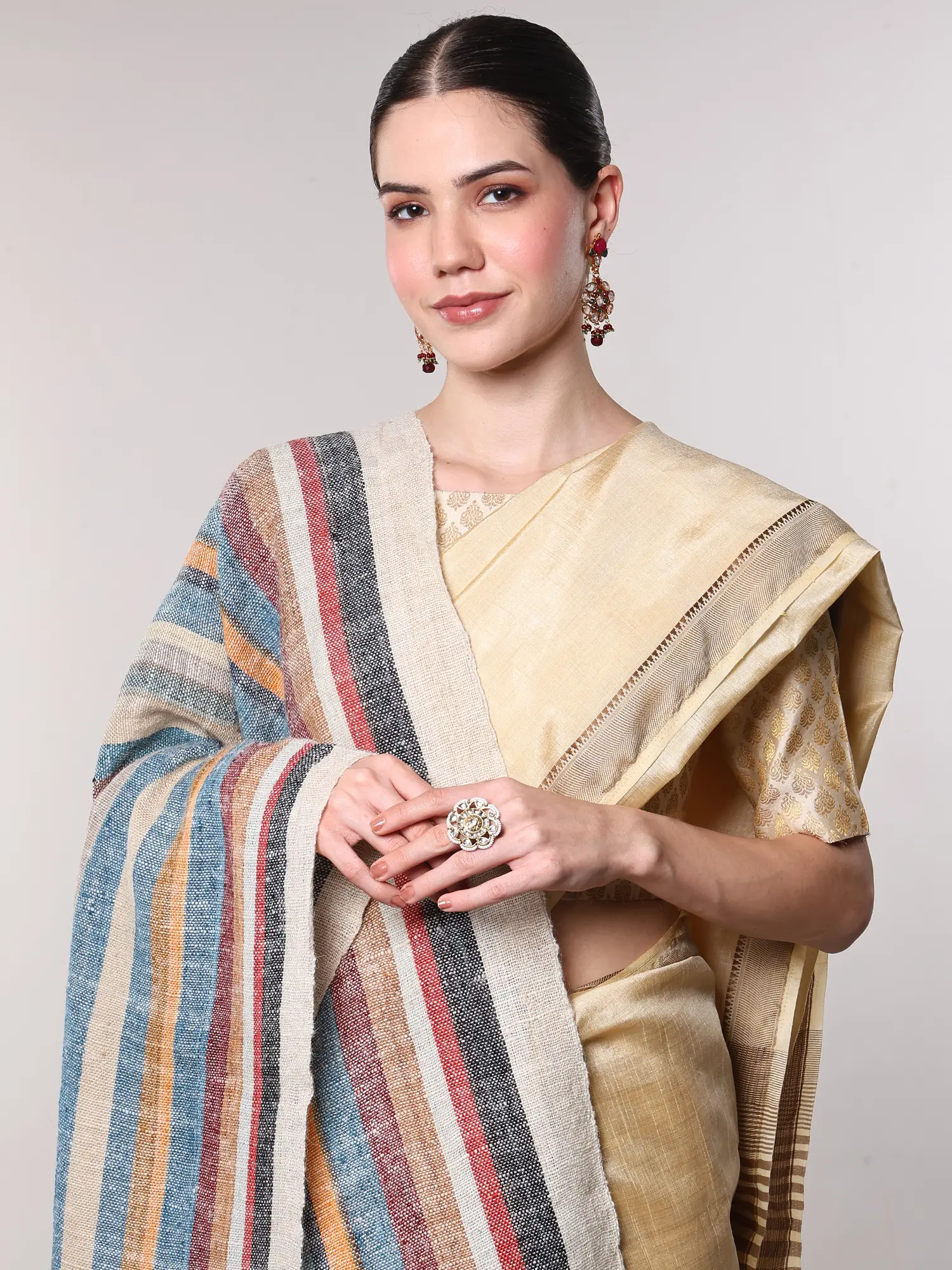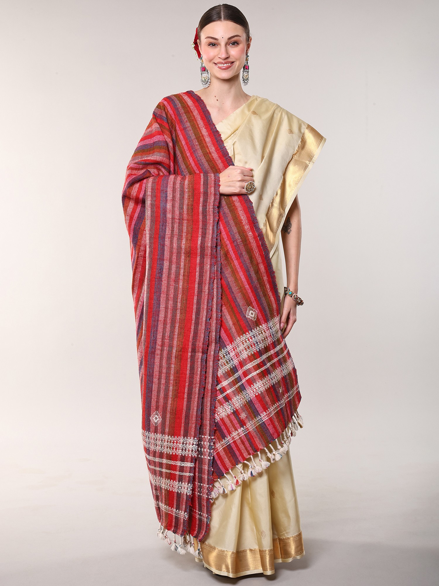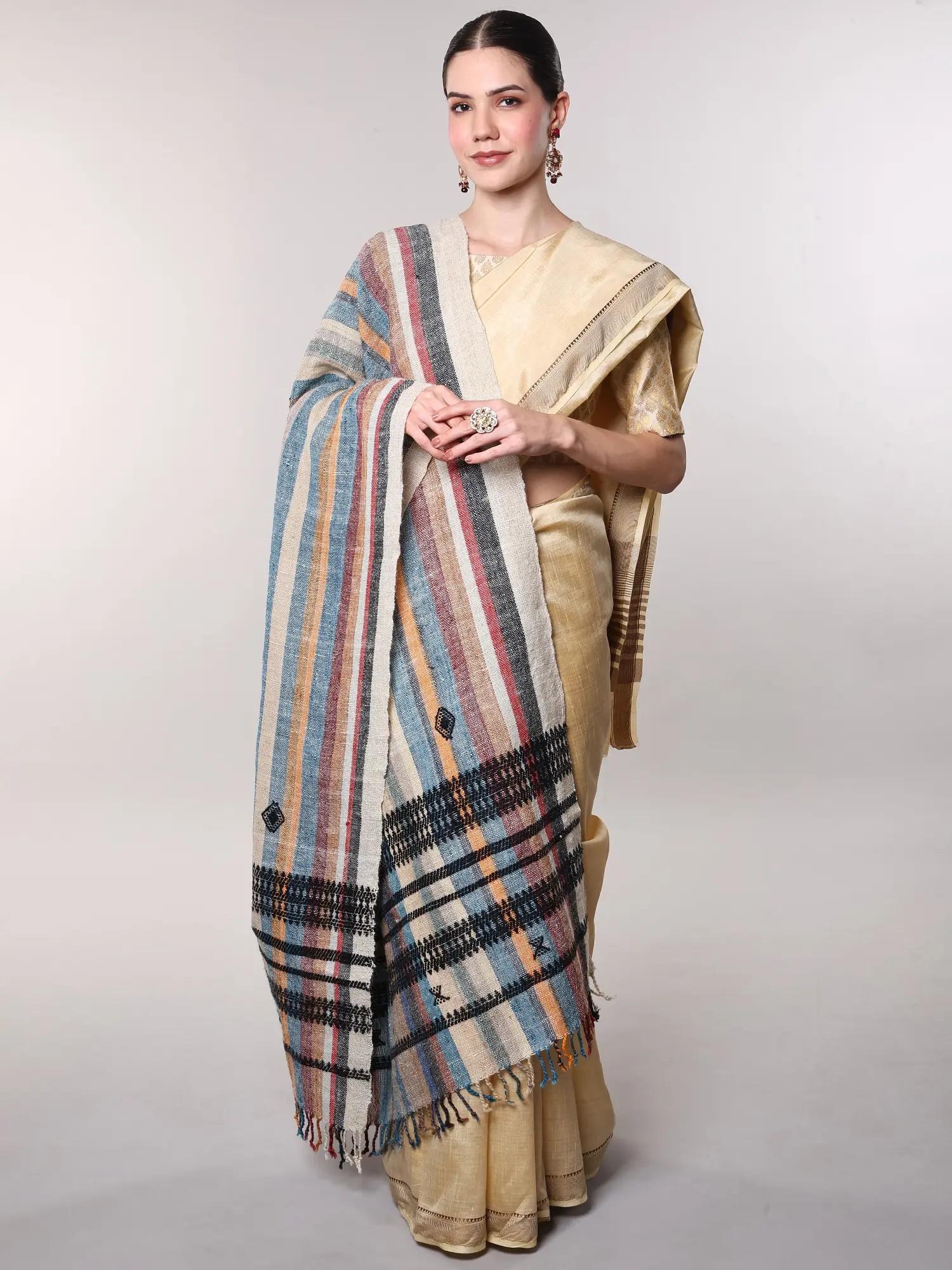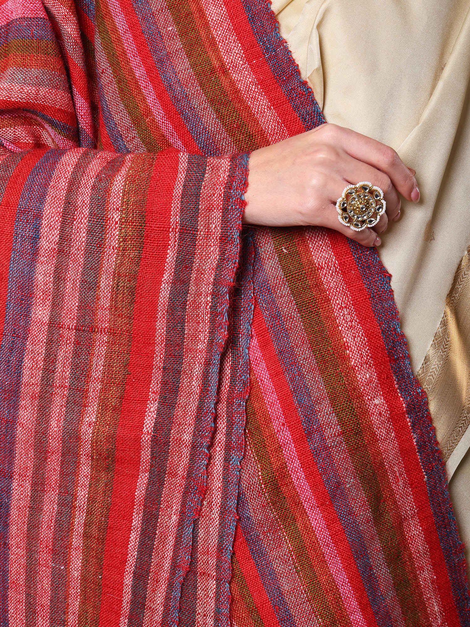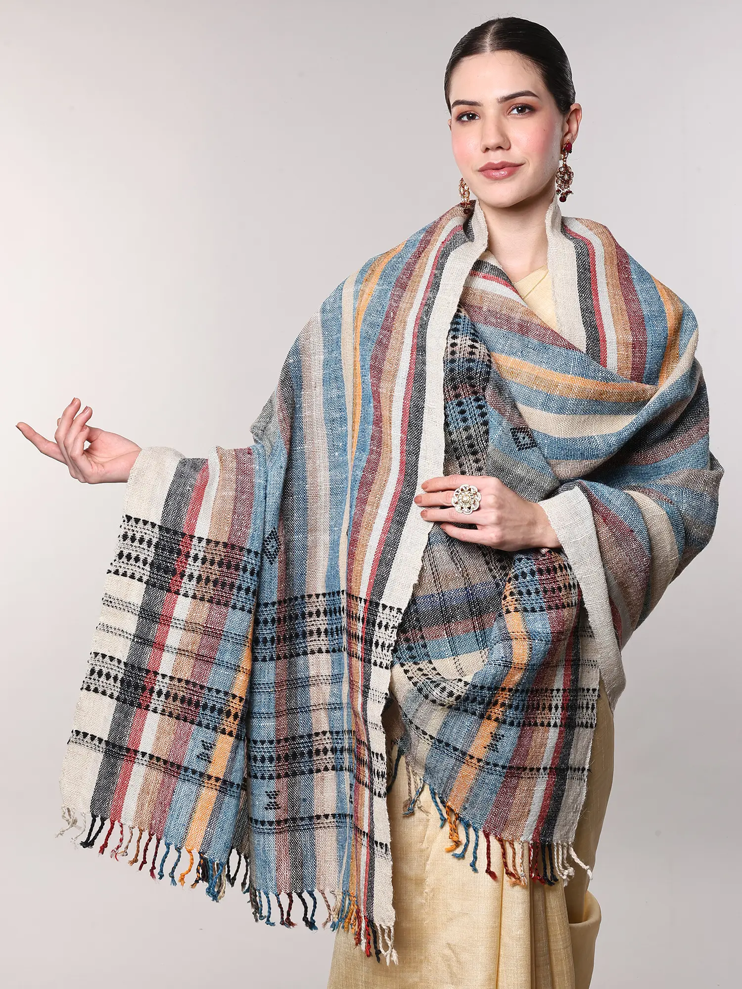 Multi-color Hand-woven Folk Shawl from Kutch