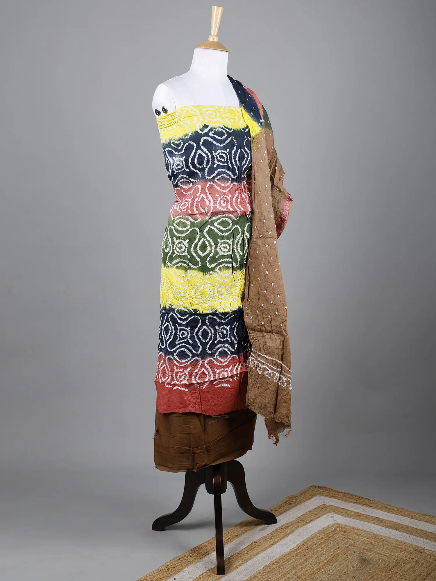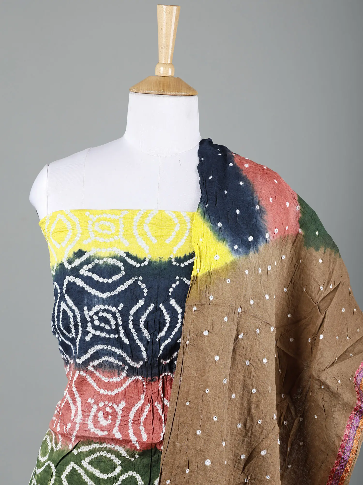 Satin Kaftaan Style Bandhani Printed Salwar Kameez with Gajji Patti on Border