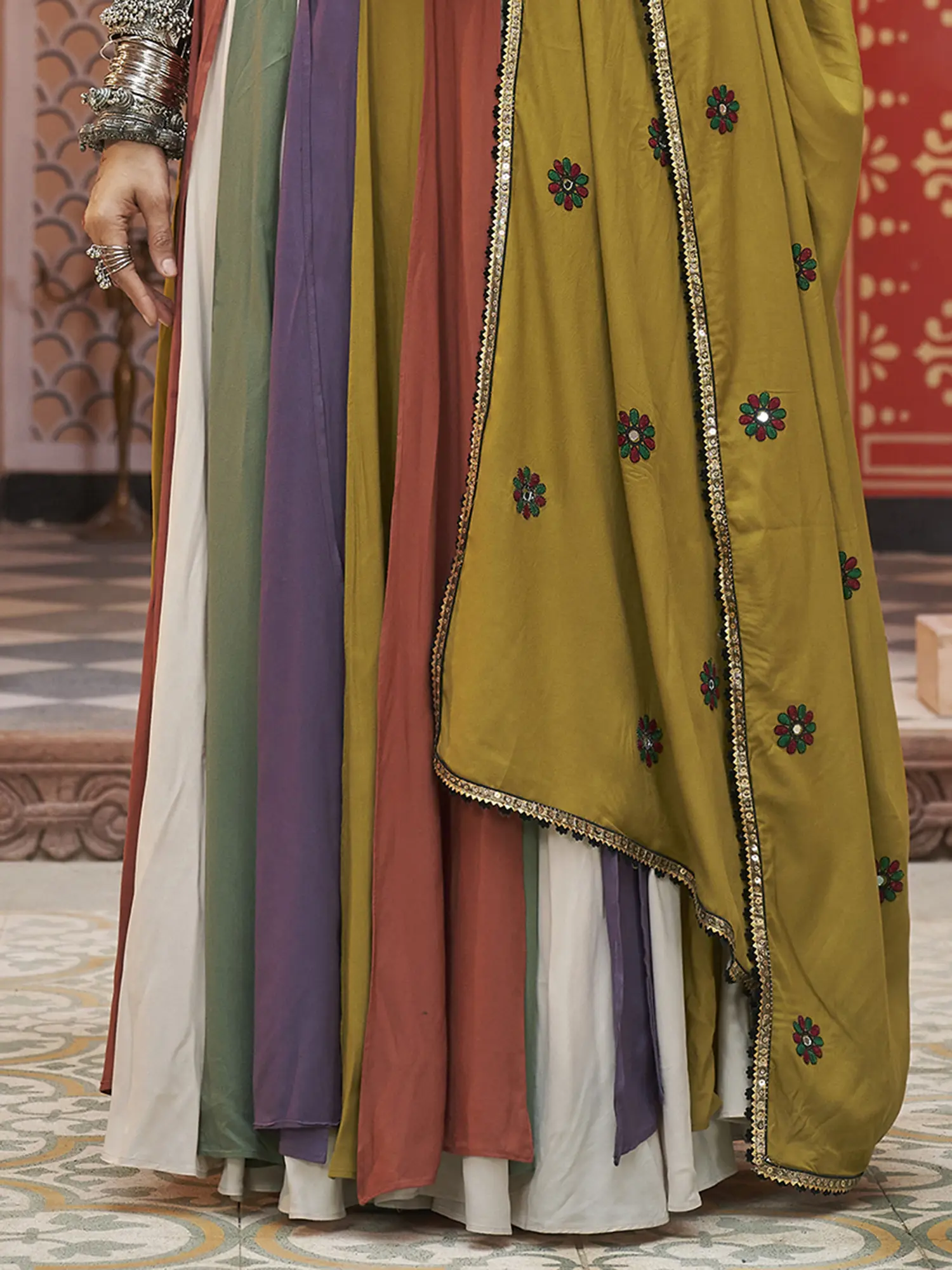 Abstract Digital Print Attractive Georgette Party Wear Lehenga Choli With Matching Shrug