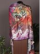 This colorful pashmina stole is based on wildlife, capturing its beauty by depicting a tiger and a horse. The stole's stunning artwork and detailed detailing perfectly capture the majestic nature of these animals. Each shade was specifically chosen to bring out the beauty of the tiger and horse designs. The colors are a beautiful blend of nature's color pallet. The stole almost seems to be a living canvas, painting a picture of the wild and free.