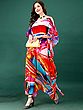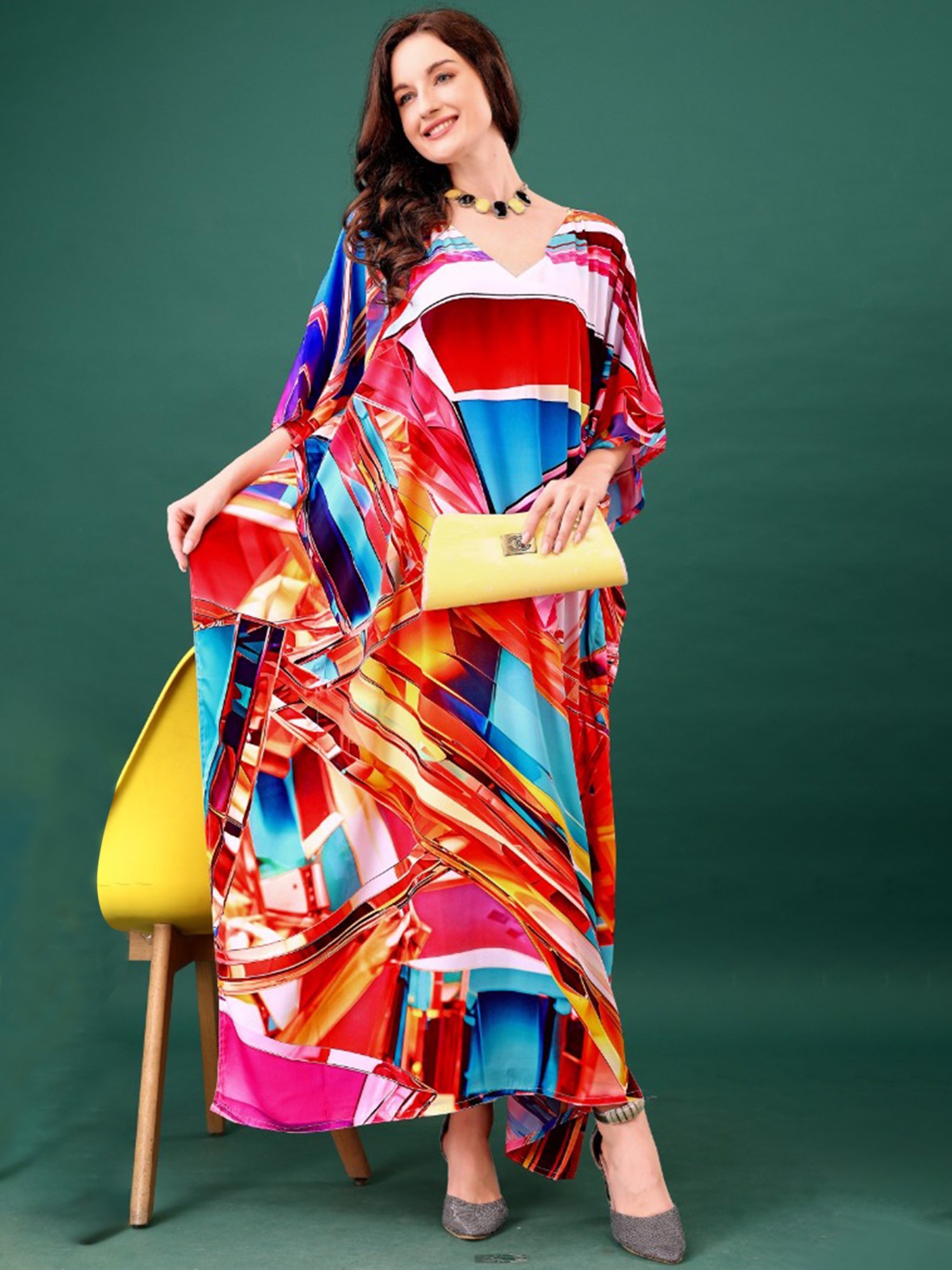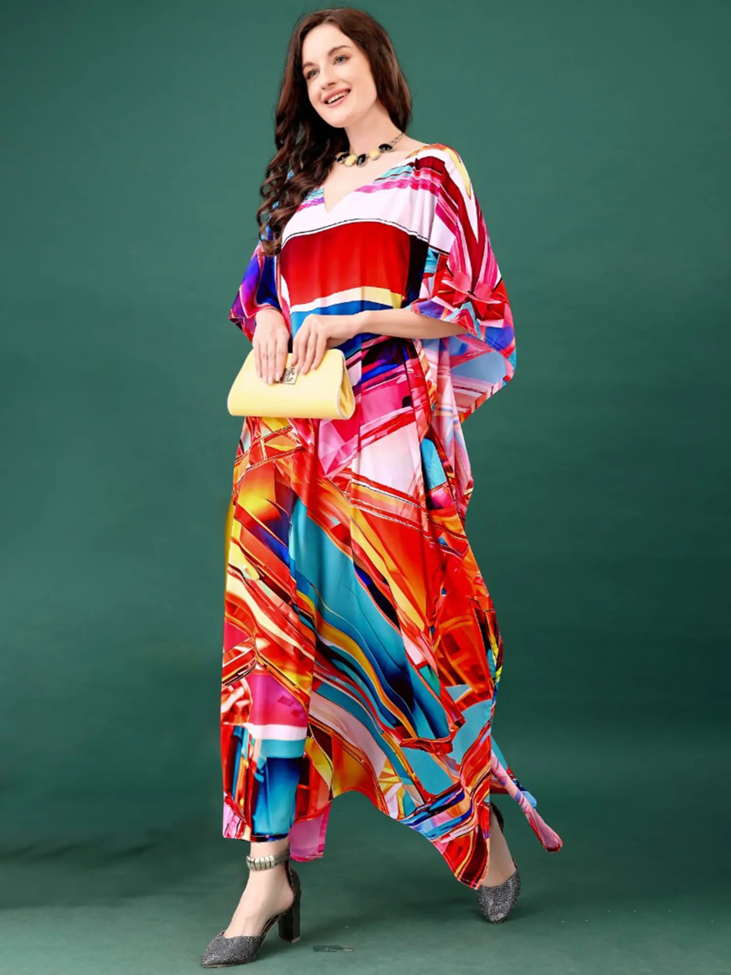 Red and Black Abstract Printed Long Kaftan with Internal Drawstring