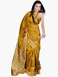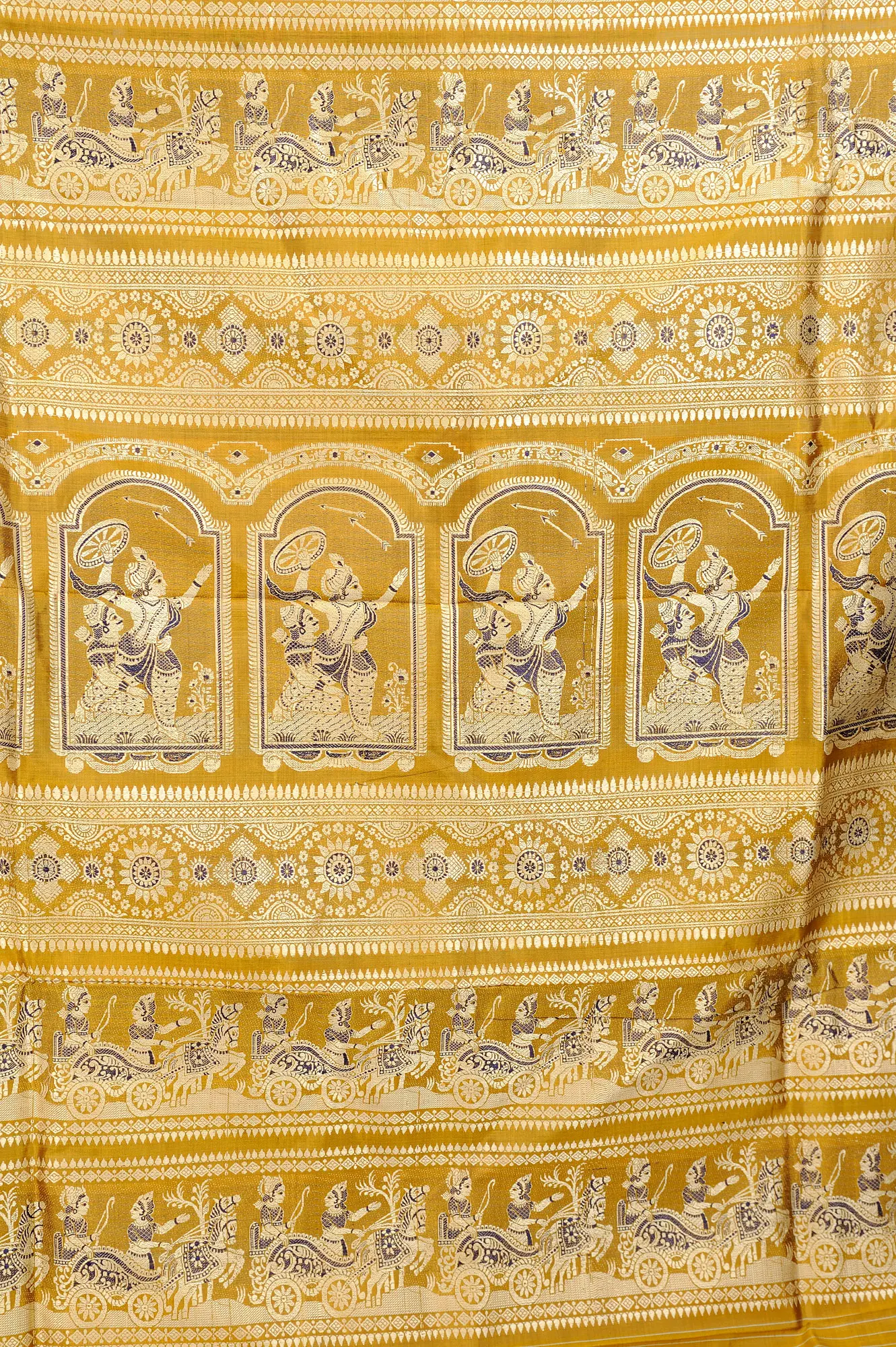 Mustard-Golden Baluchari Sari from Bengal Depicting an Episode from the Gita Updesh