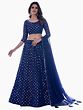 Immerse yourself in the allure of the Navy-Blue Georgette Chowkadi Motif Lehenga Choli, a canvas adorned with cultural richness and contemporary finesse. Envision the intricate Chowkadi motifs gracefully adorning the georgette fabric, each motif a testament to timeless craftsmanship. Experience the symphony of shine and texture created by the beautiful blending of thread embroidery and sequins. This Lehenga Choli is more than just apparel; it's a wearable work of art that combines modern and traditional design elements.
