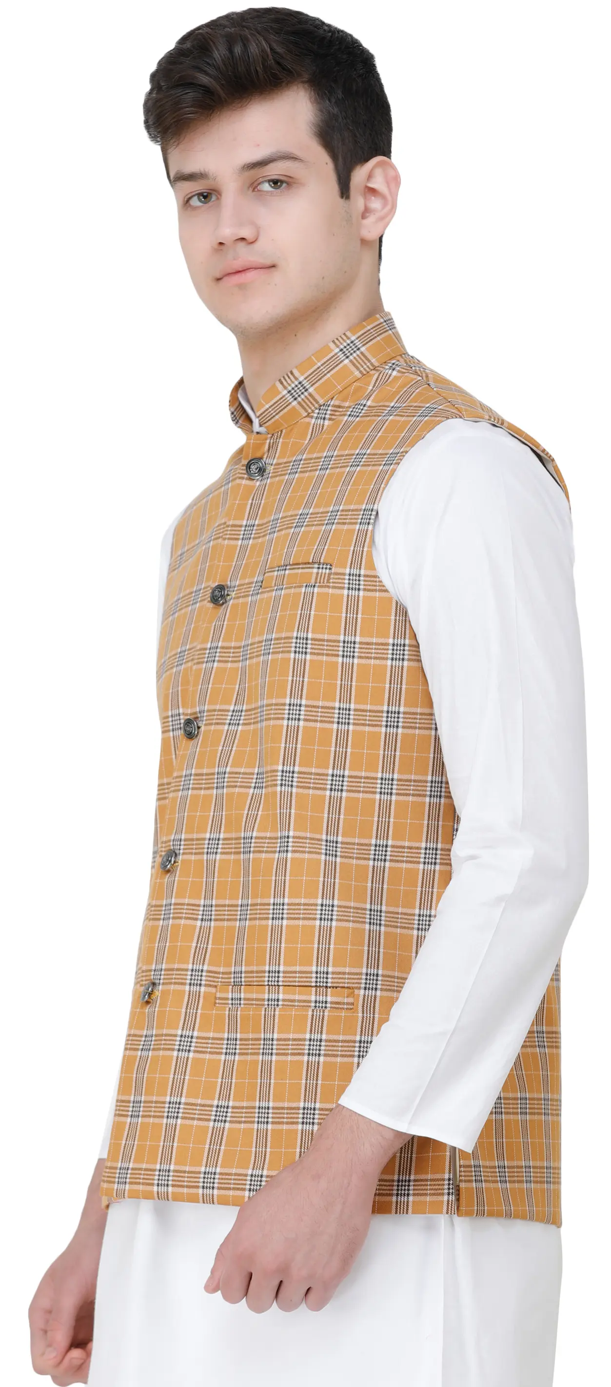 Infuse sophistication into your wardrobe with this Nehru jacket featuring a double-check pattern. The meticulously woven design adds a touch of elegance, making it a standout piece for both formal and semi-formal occasions. The inclusion of front functionality allows you to carry essentials with ease. Whether paired with traditional attire or contemporary ensembles, this Nehru jacket effortlessly elevates your style. Embrace the timeless charm of this jacket, combining modern aesthetics with a classic silhouette.