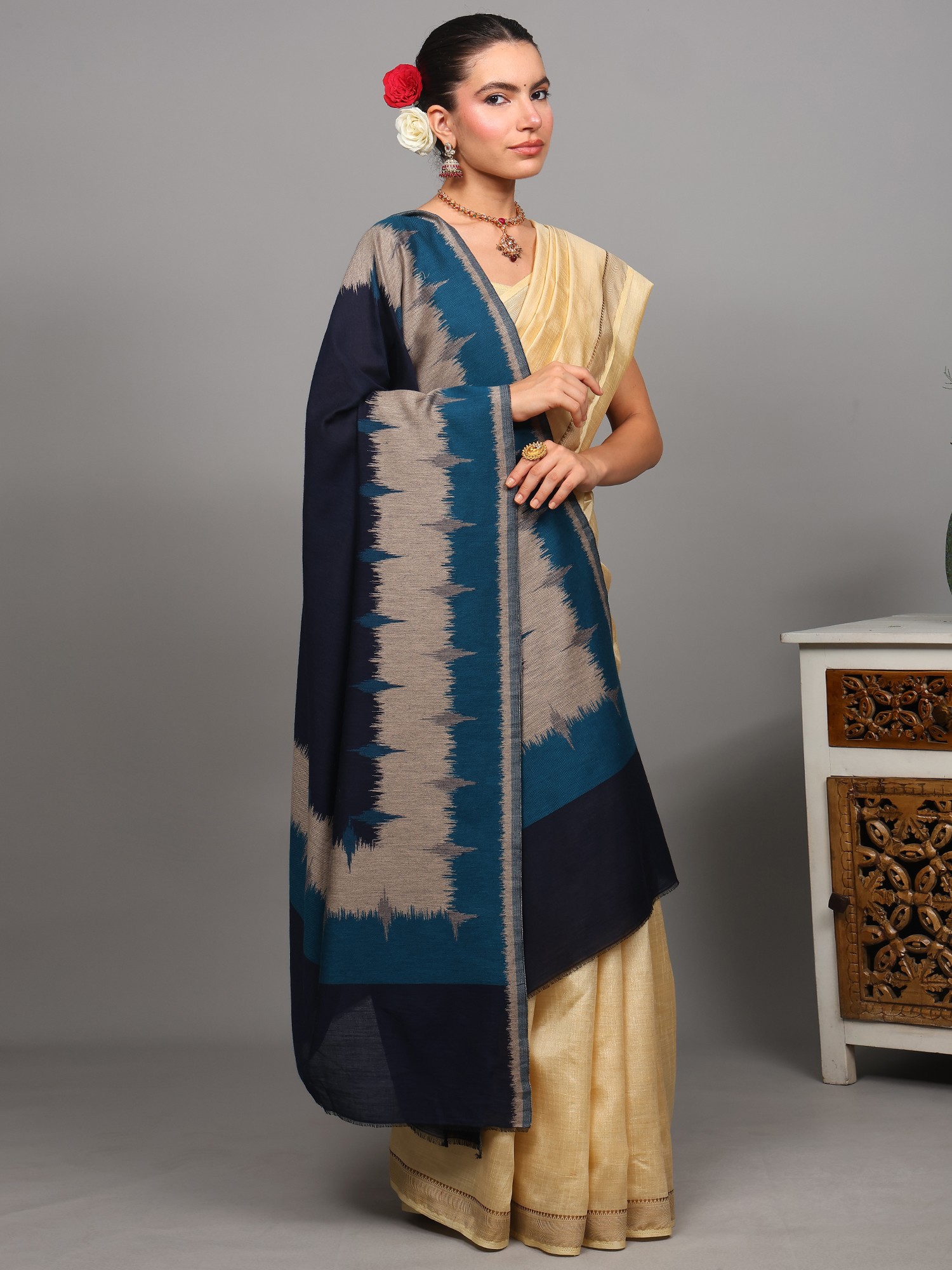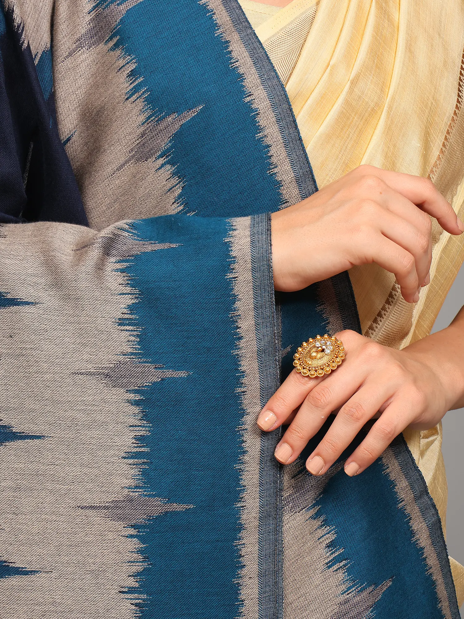 Wool Shawl with Woven All-Over Multicolor Geometric Ikat Pattern