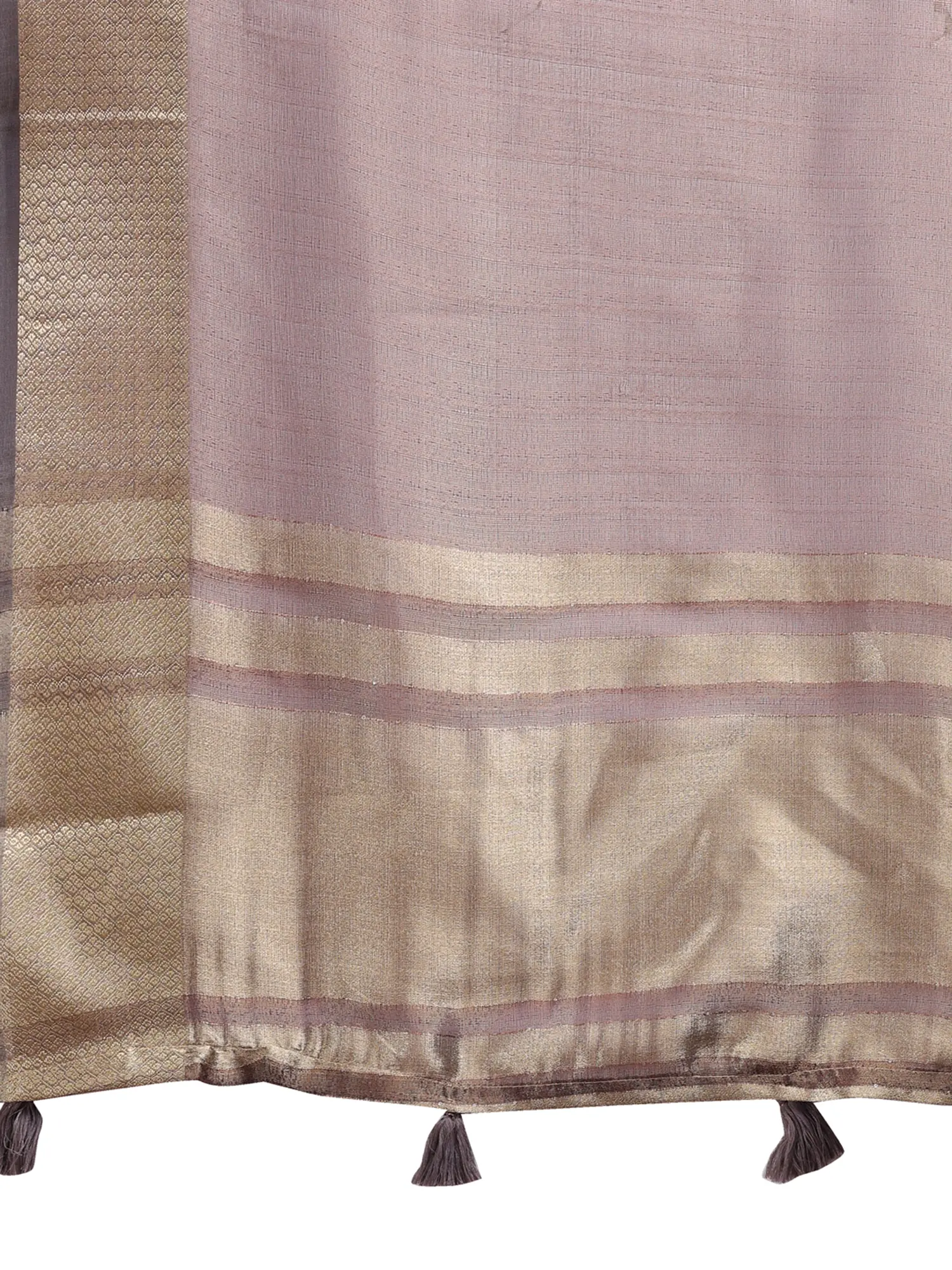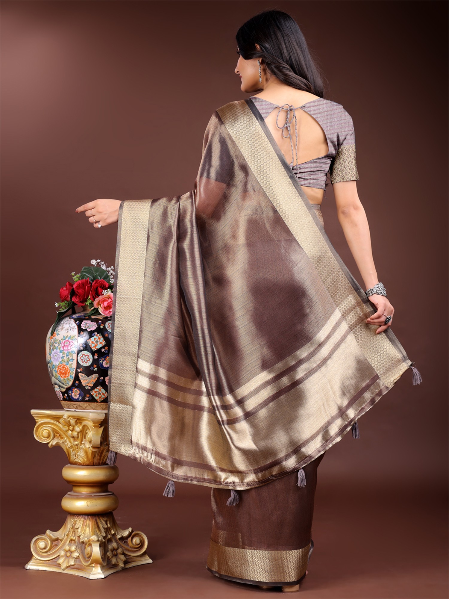 All Over Floral Woven Motifs Organza Saree With Tassels Pallu