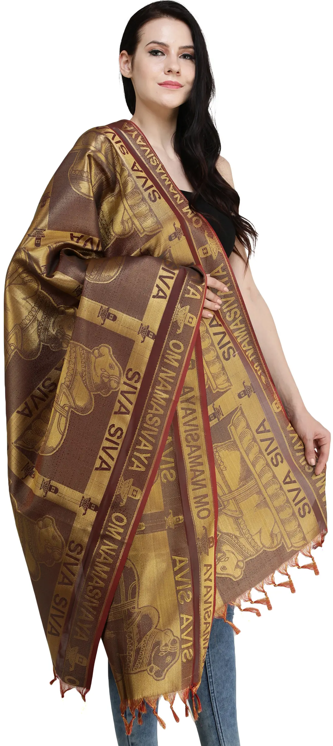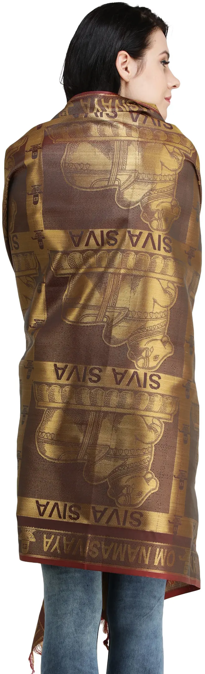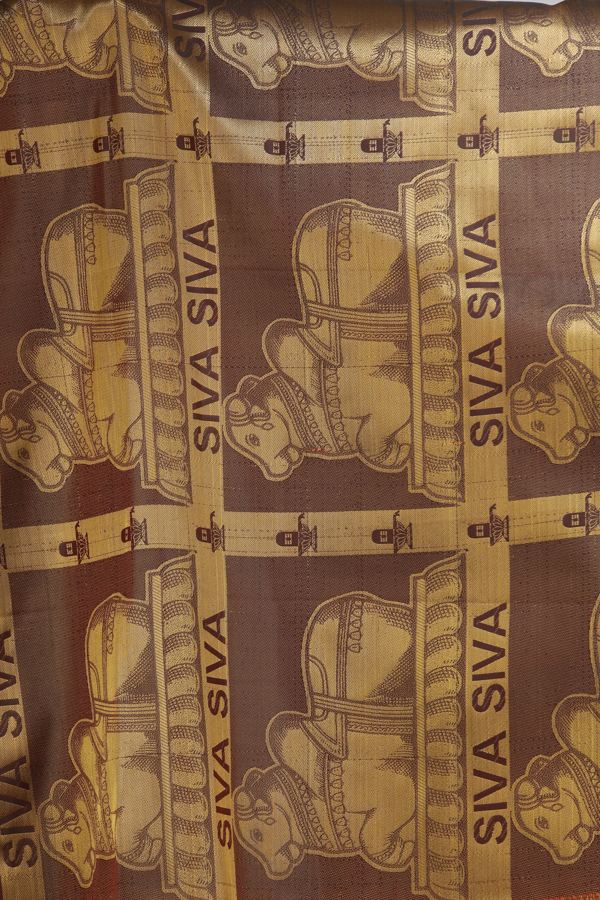 Brocaded Shiv Ling Prayer Shawl with Woven Om Namah Shivay Mantra and Nandi from Tamil Nadu