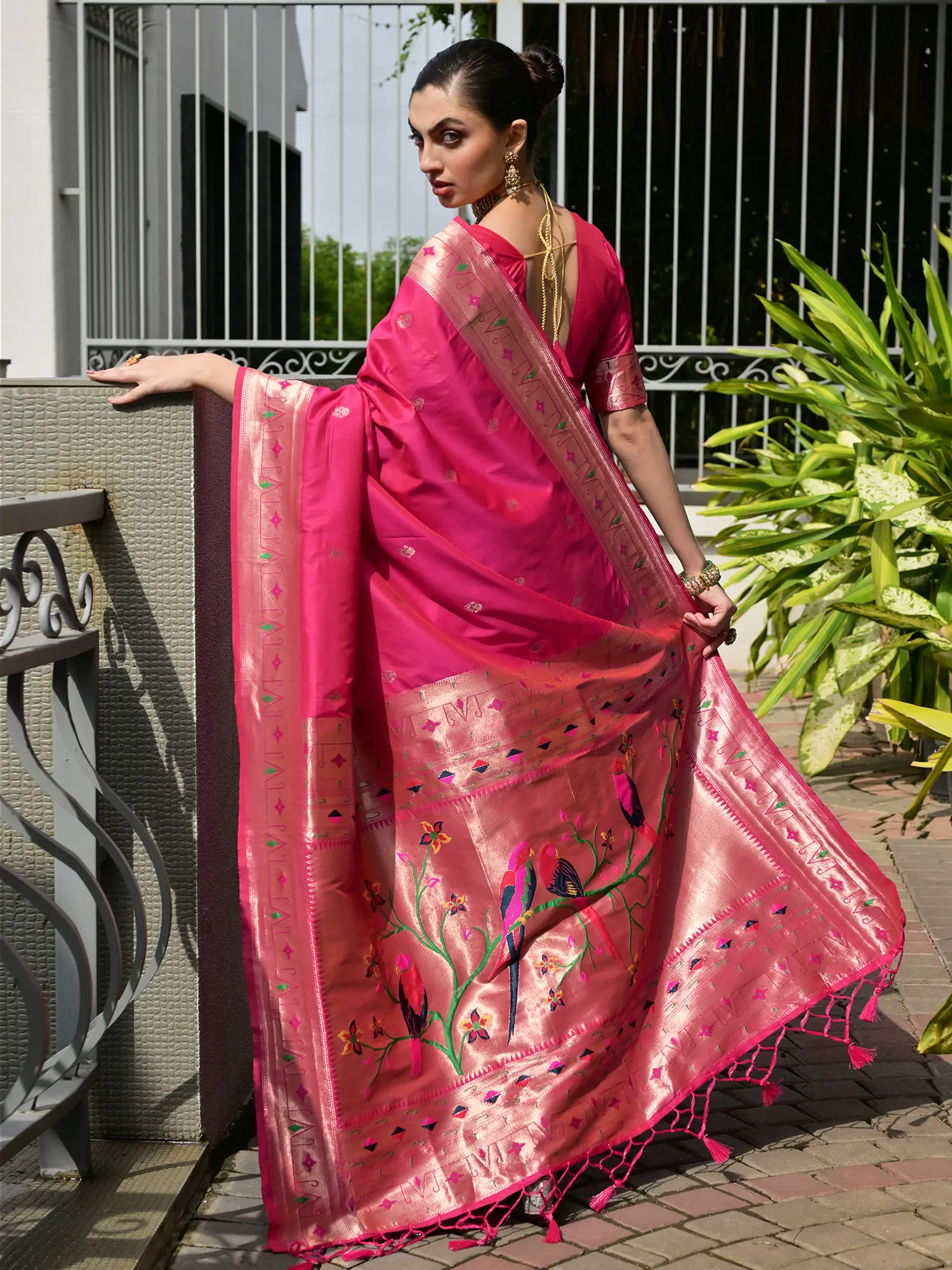 Pure Paithani Silk Saree With Meenakari And Zari Work