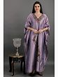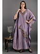 Experience the charm of the Pale-Pansy Long Kashmiri Kaftan, a sartorial creation graced with floral Aari hand embroidery. The soft hues and delicate patterns echo the tranquility of Kashmir's meadows. This kaftan is a canvas of tradition and artistry, where each stitch is a brushstroke on the fabric, creating a symphony of beauty. Embrace the Kashmiri legacy with this kaftan that transcends seasons and trends.