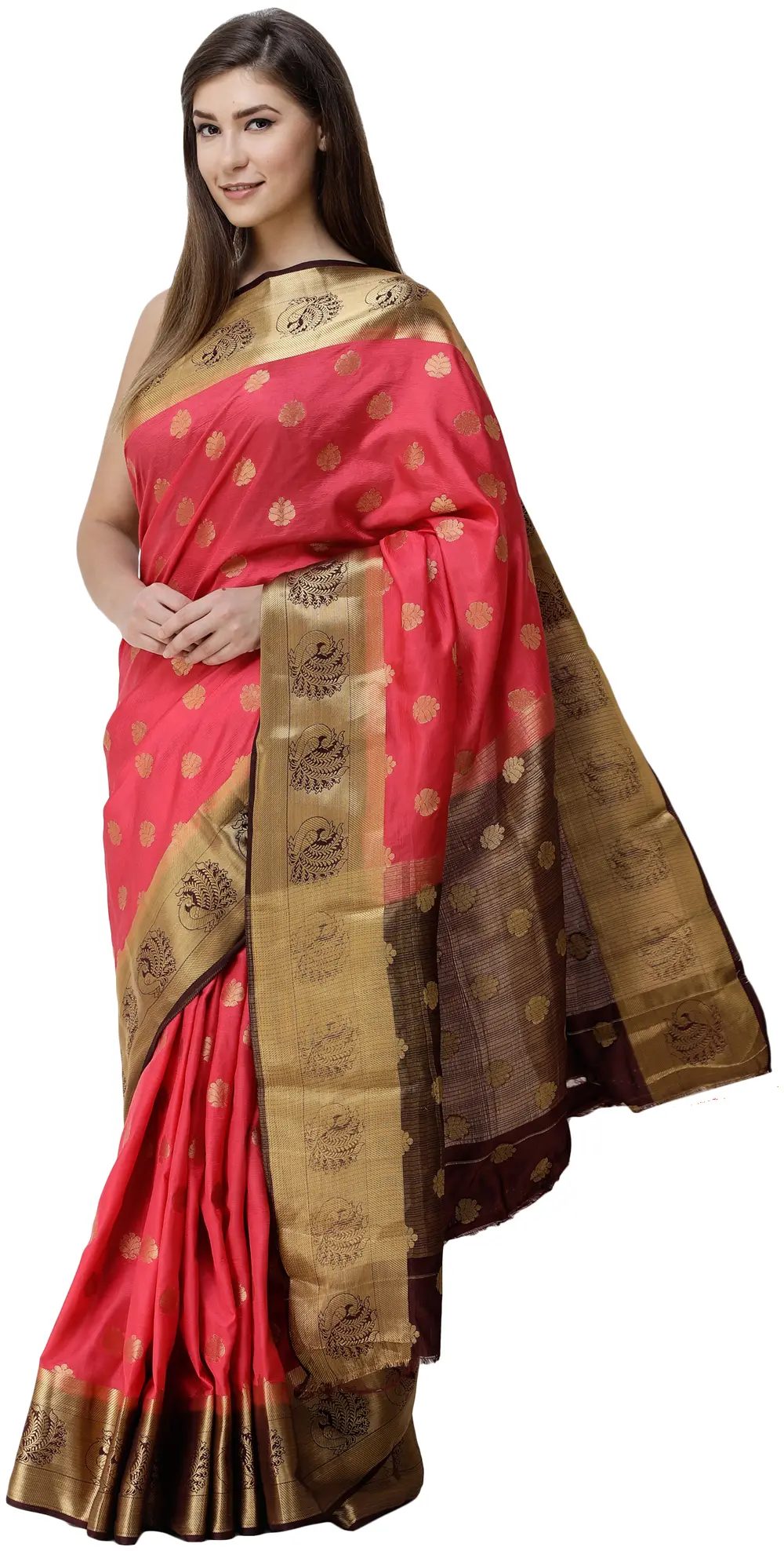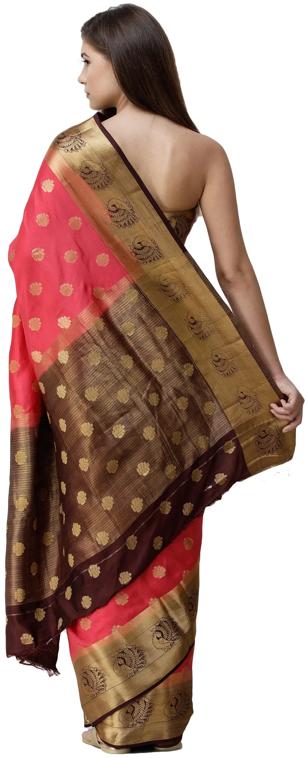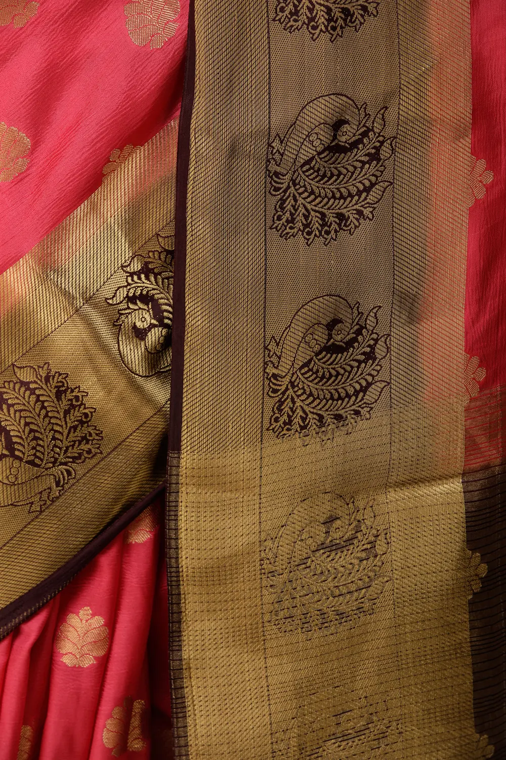Rococco-Red Brocaded Uppada Sari with Zari Woven Temple Border and Bootis