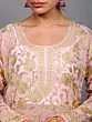 Indulge in the delicate charm of this exquisite long kurti, a masterpiece designed to elevate your ethnic wardrobe. Crafted from luxurious georgette fabric, this kurti drapes beautifully, offering both comfort and a sophisticated silhouette. The soft, parfait pink hue serves as a perfect canvas for the intricate Aari embroidery that adorns its entirety.