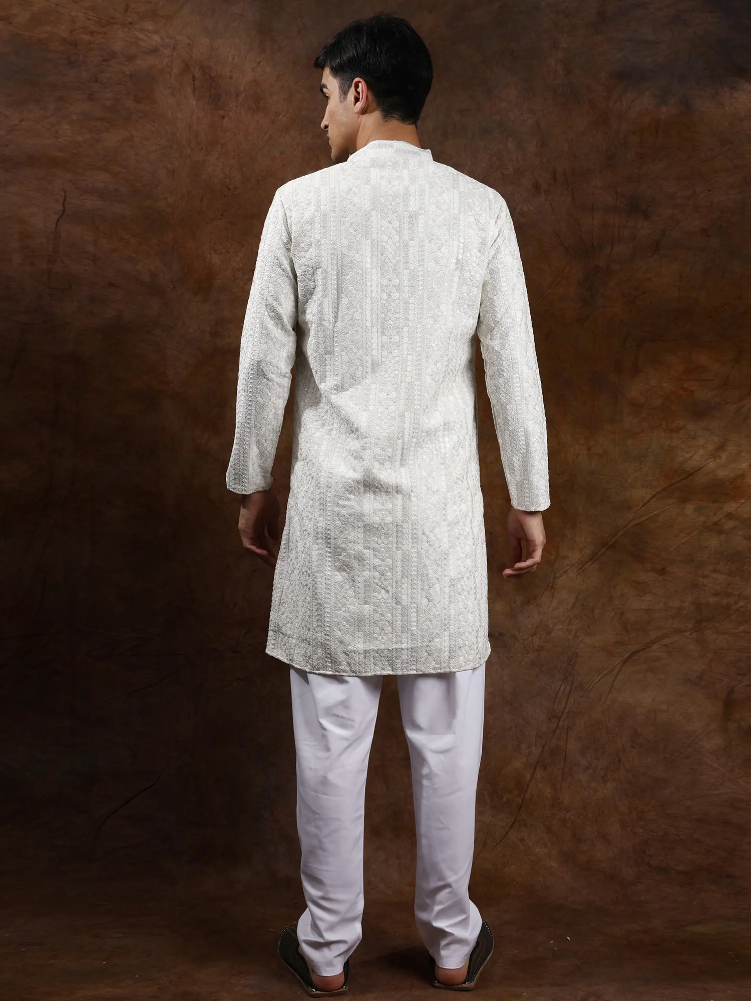 Midnight-Sail Chikankari Cotton Kurta Pajama Set