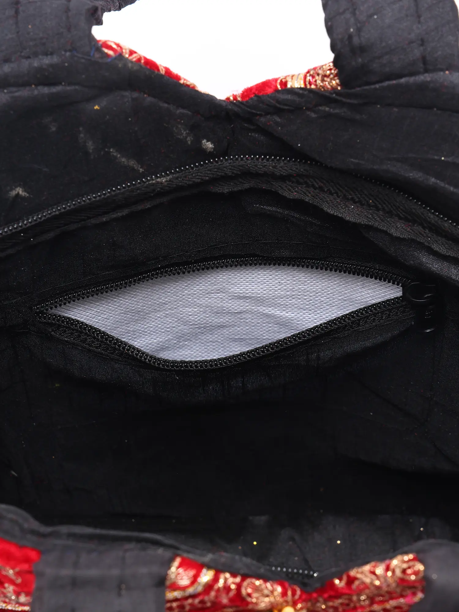 Step into a world of vibrant artistry and timeless craftsmanship with this exquisite shopper bag. Hailing from the culturally rich region of Kutch, this bag is more than just an accessory; it's a wearable piece of art, meticulously crafted to capture the spirit of traditional Indian textiles. The deep, luxurious velvet forms the base, offering a soft and supple feel that hints at the quality and care invested in its creation.