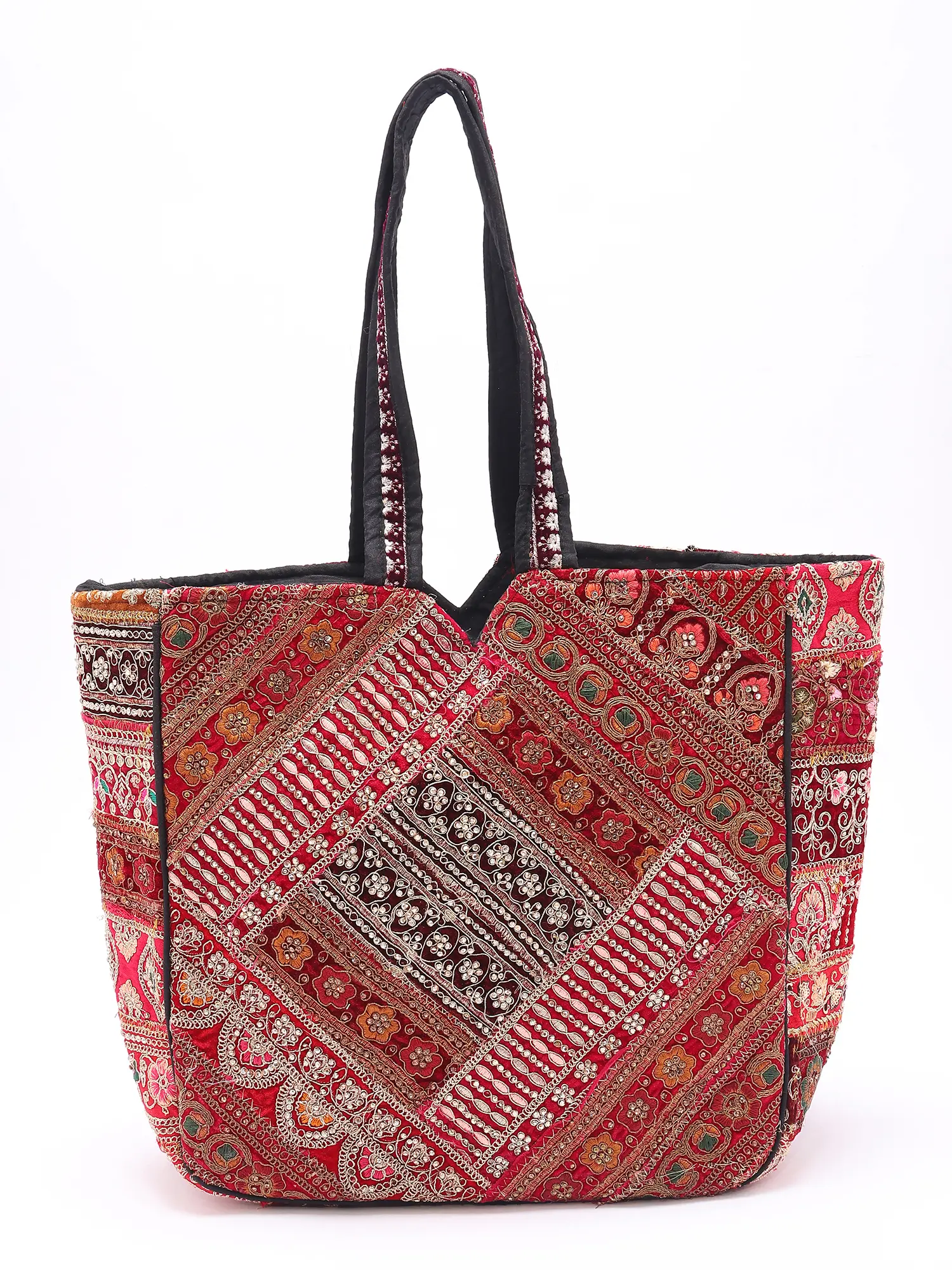 Patchwork Embroidered Shopper Bag from Kutch with Cowrie Shell and Beads work