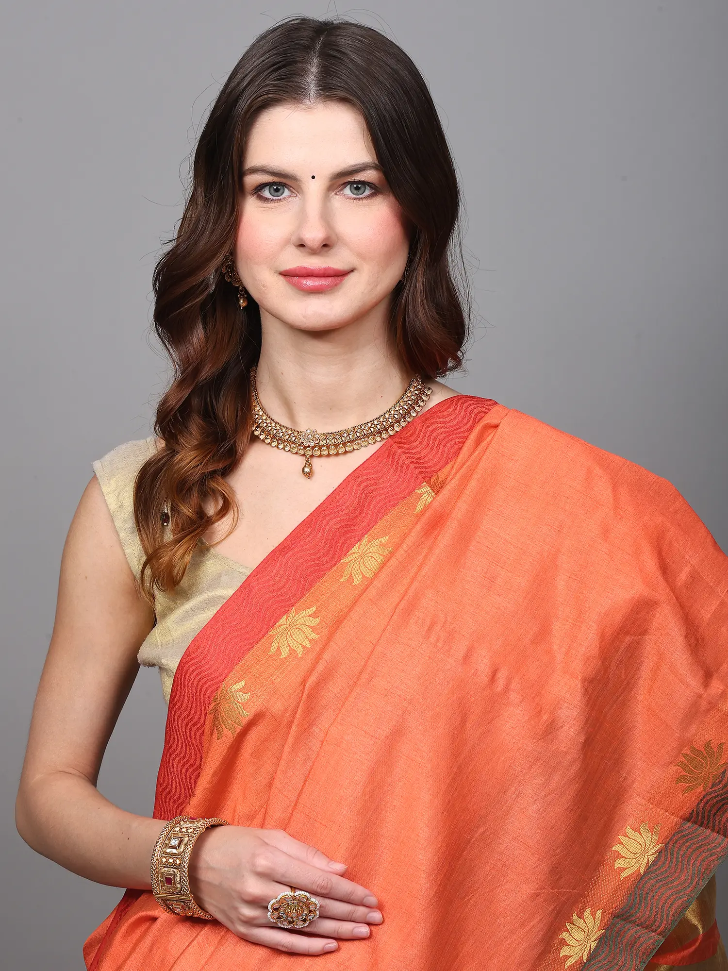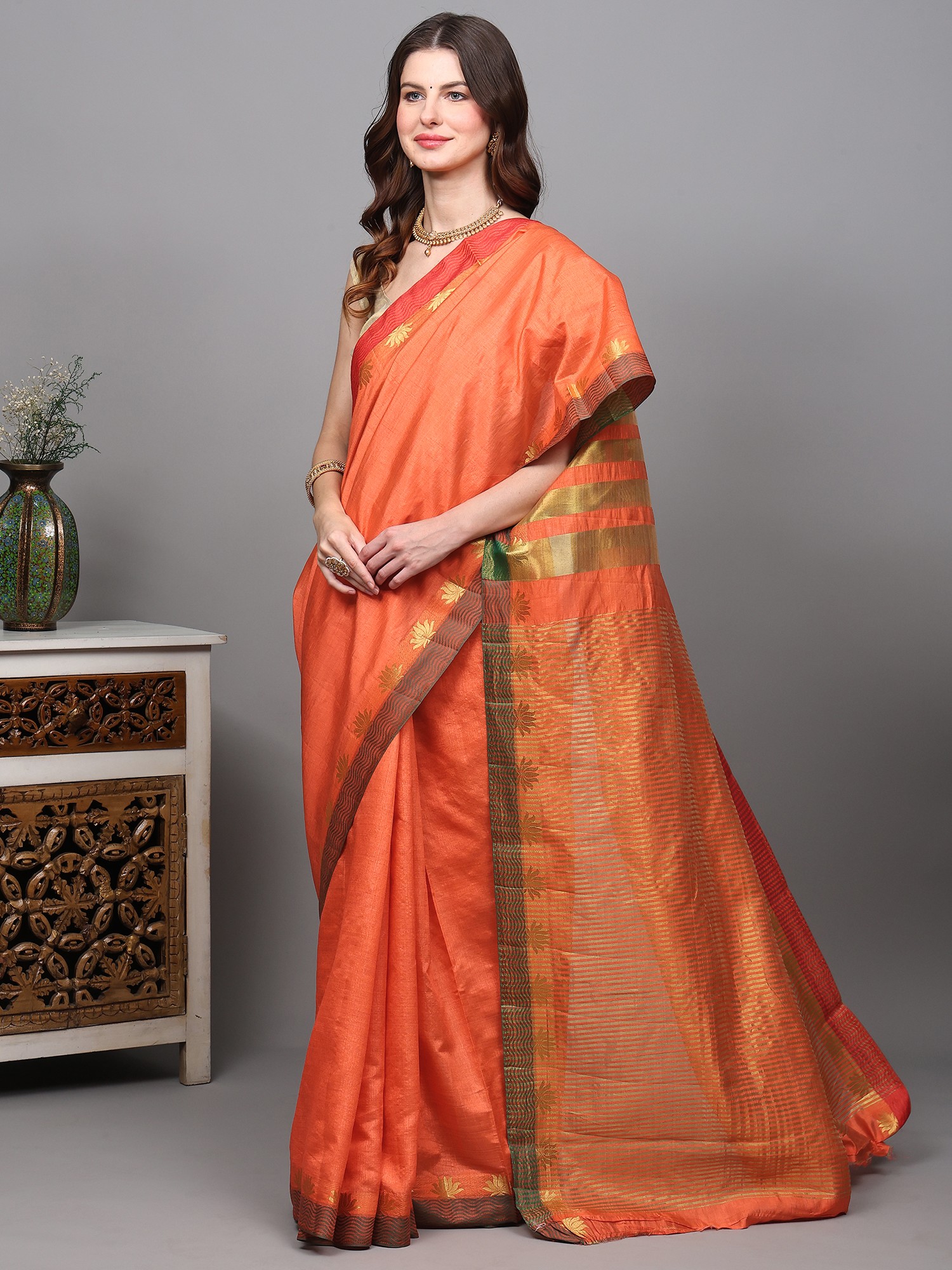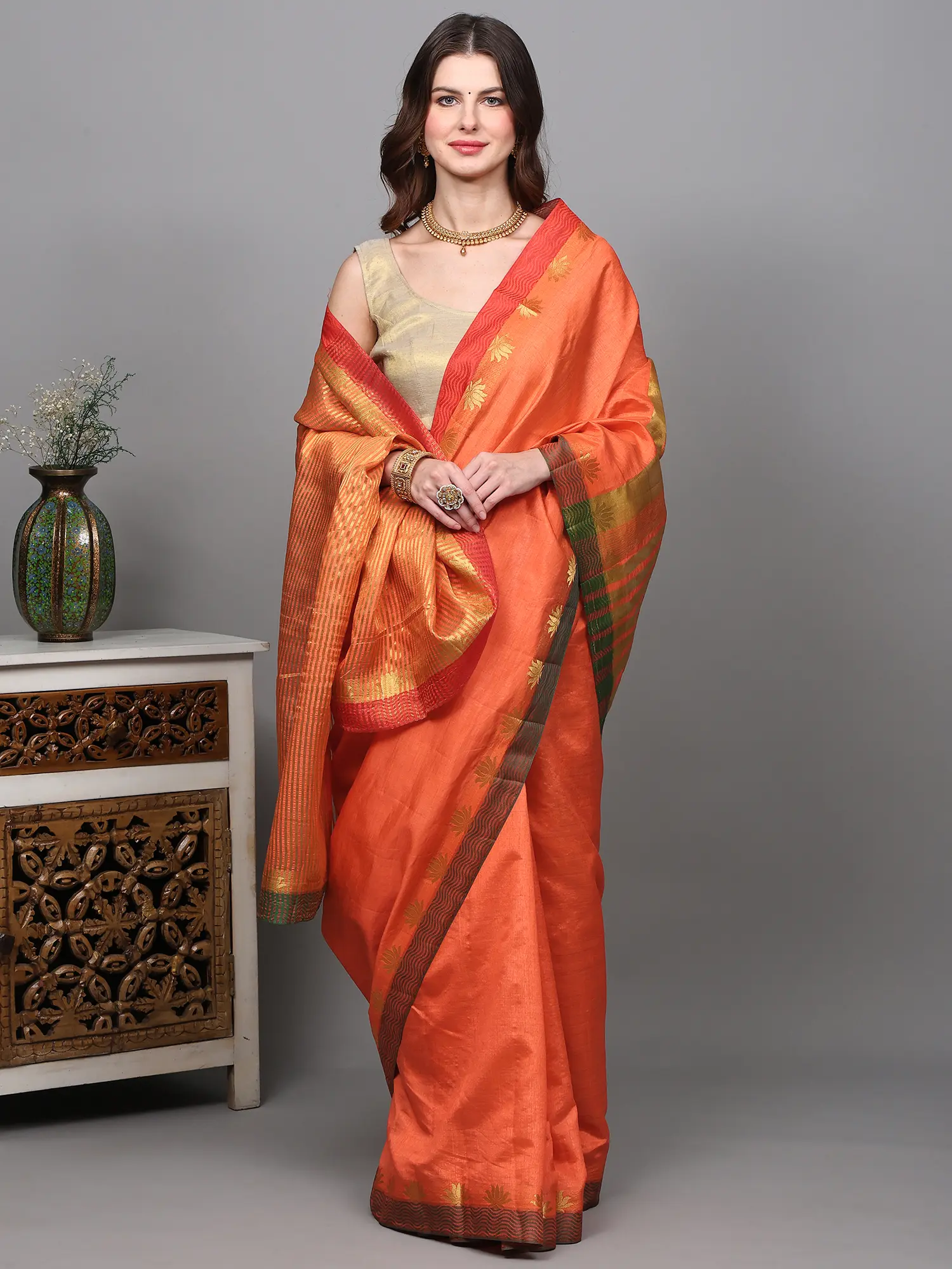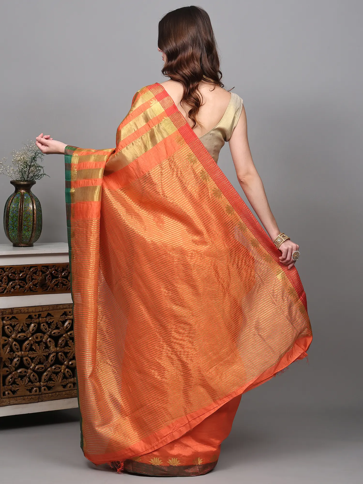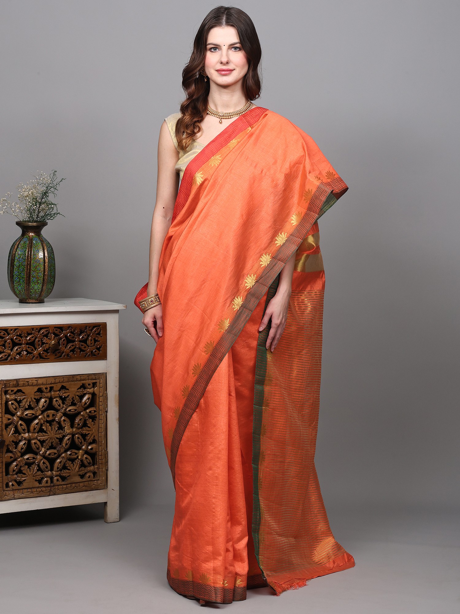 Cress-Green Kanjeevaram Silk Saree with Brocaded Zari Paisley-Floral Booti from Chennai