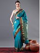 Peacock-Green Banarasi Silk Saree With Brocaded Tree Of Life Motif On Body And Bail-Paisley On Pallu-Border